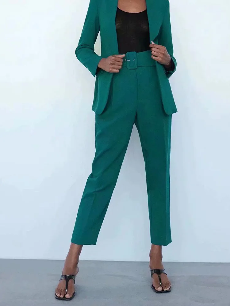 GCAROL Женский костюм с высокой талией, брюки с поясом, длиной до щ...