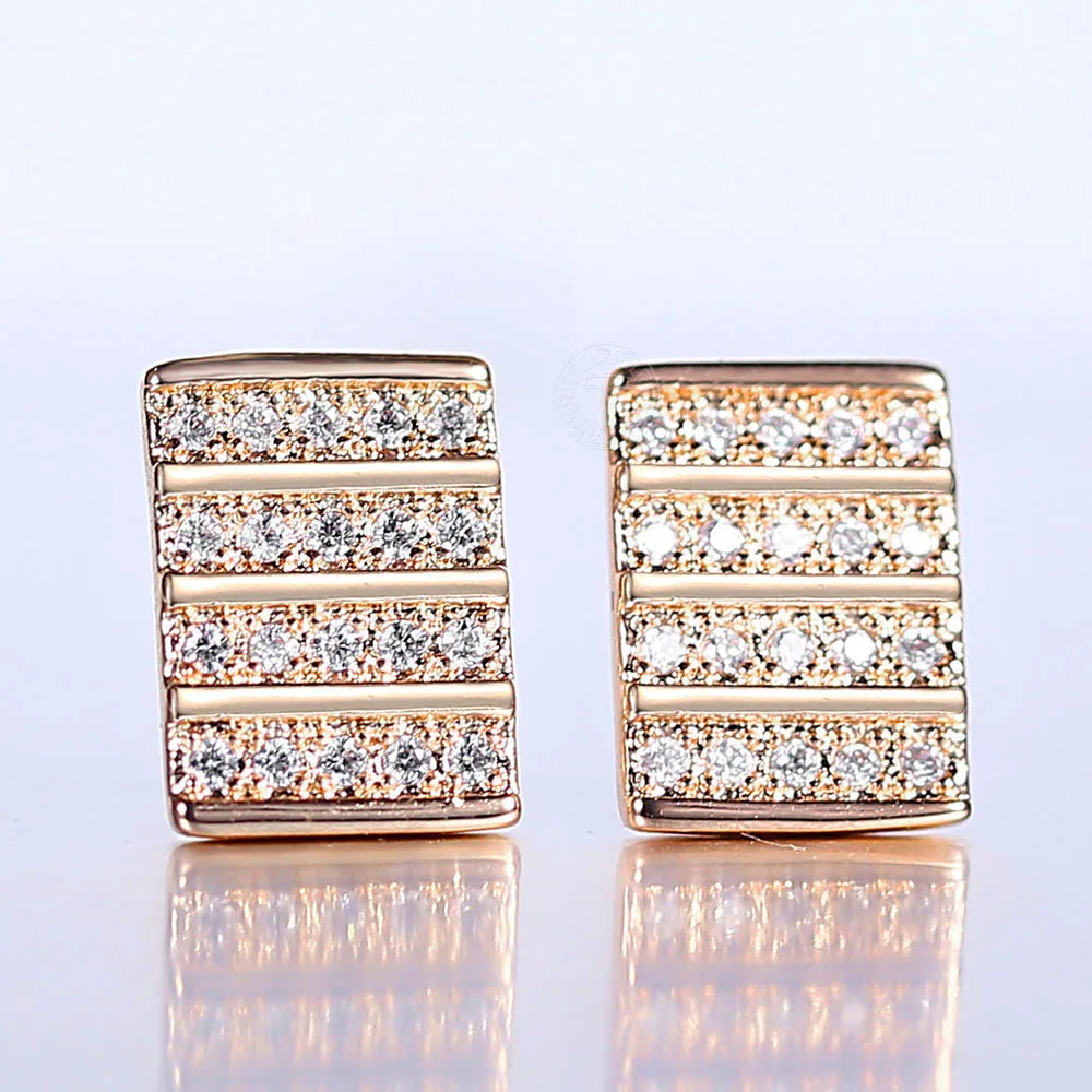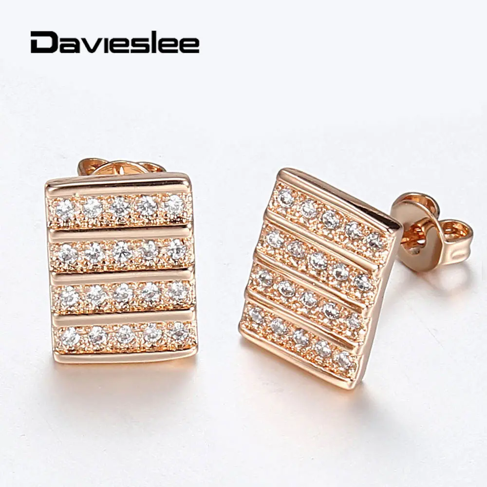 Женские серьги-гвоздики из розового золота 585 пробы с кубическим цирконием, изогнутые прямоугольные модные ювелирные изделия, подарки LGE276