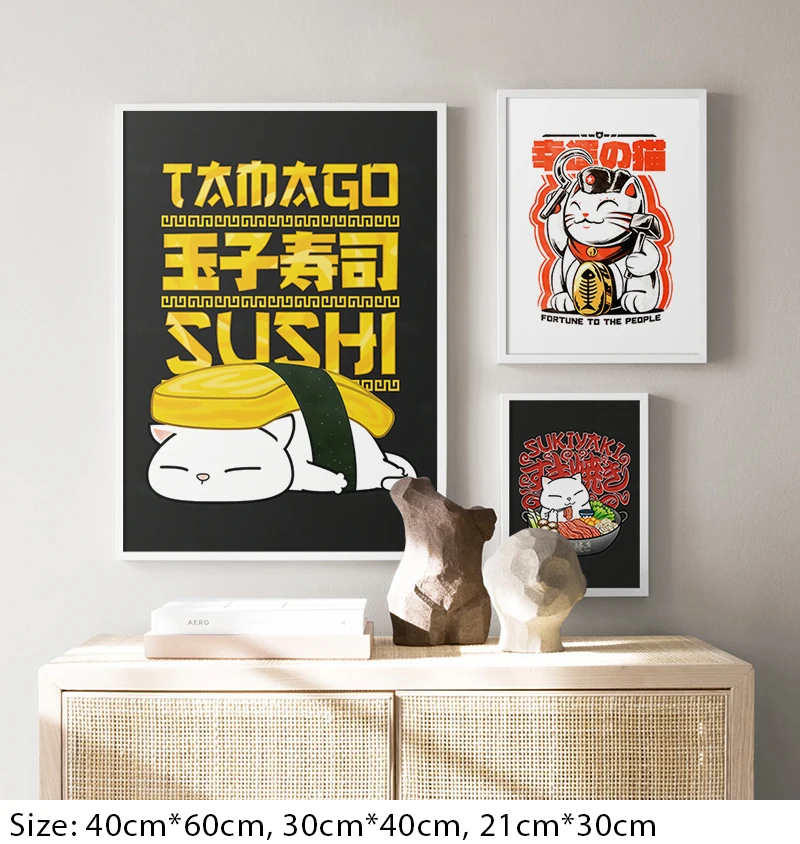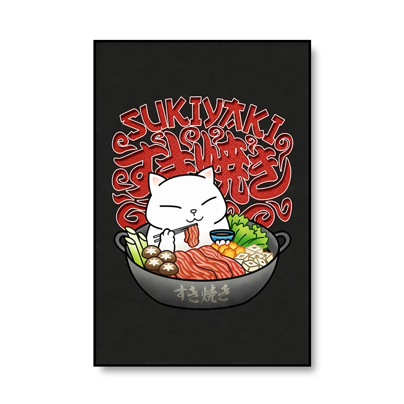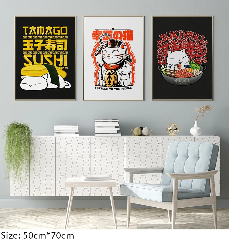Японский Еда холст Картины в наиболее выгодном свете людей Плакаты и принтами Милая картинка с кошкой Wall Art животных Модульная картина для домашнего декора
