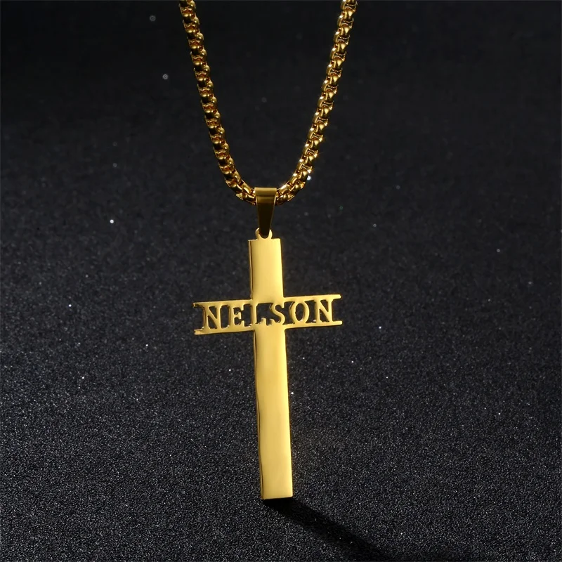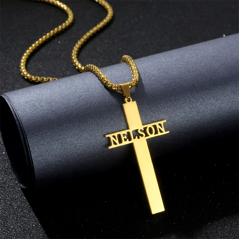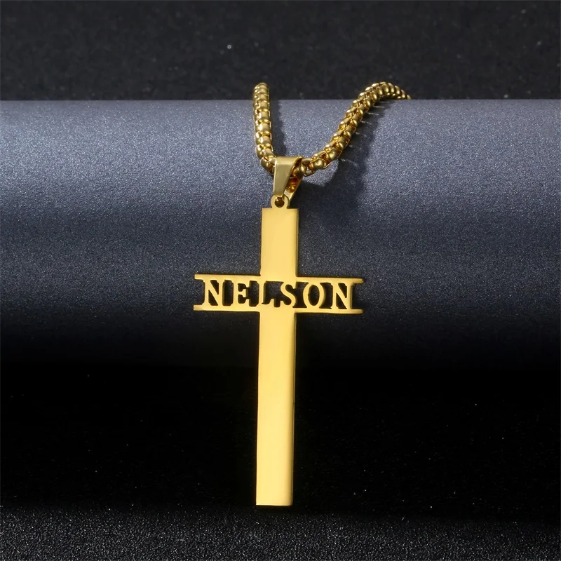 Нержавеющая сталь пользовательское имя Подвеска в виде Креста персонализированные подвеска, Амулет ожерелье Кристиан для женщин Религия подарок на день рождения