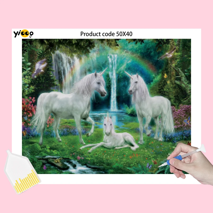 Камни в форме ромбакруглый дрель алмазного живопись Вышивка Единорог в лесу серии Стразы мозаика вышивка крестиком декора подарок TZ44