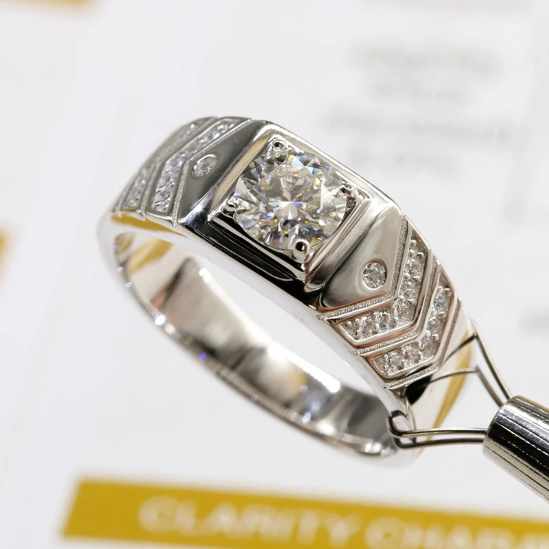 Мужское кольцо Luomansi из серебра 100% пробы с муассанитом 6,5 мм