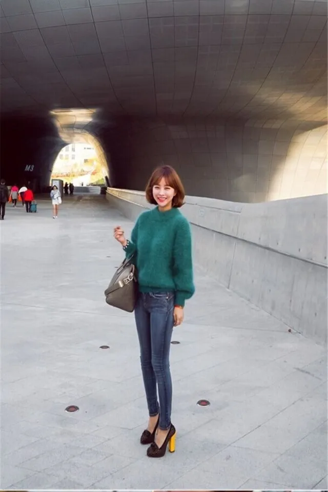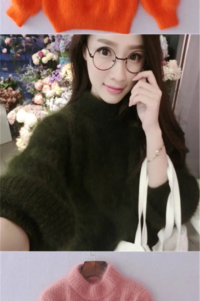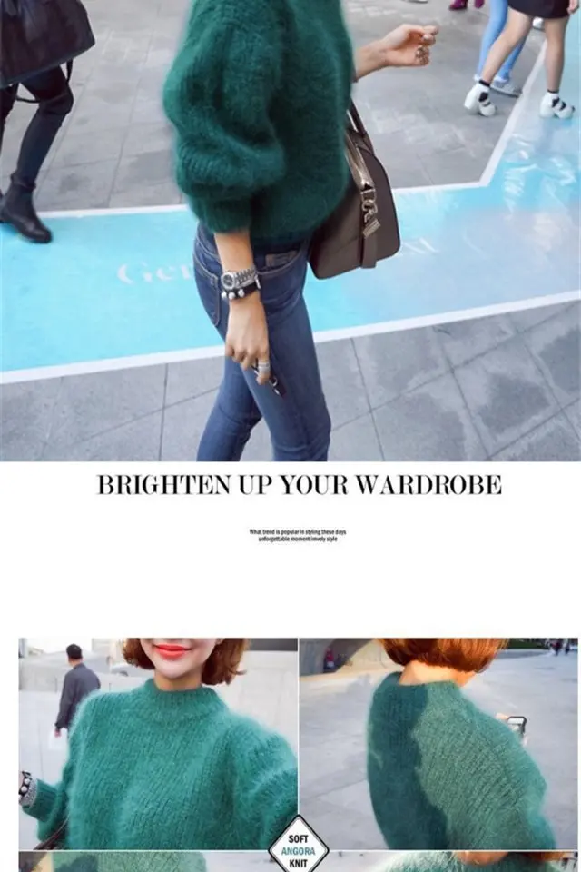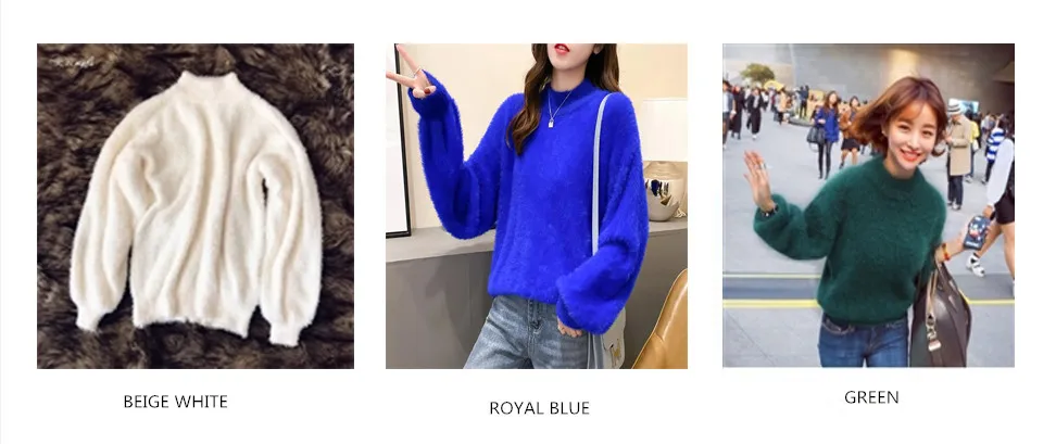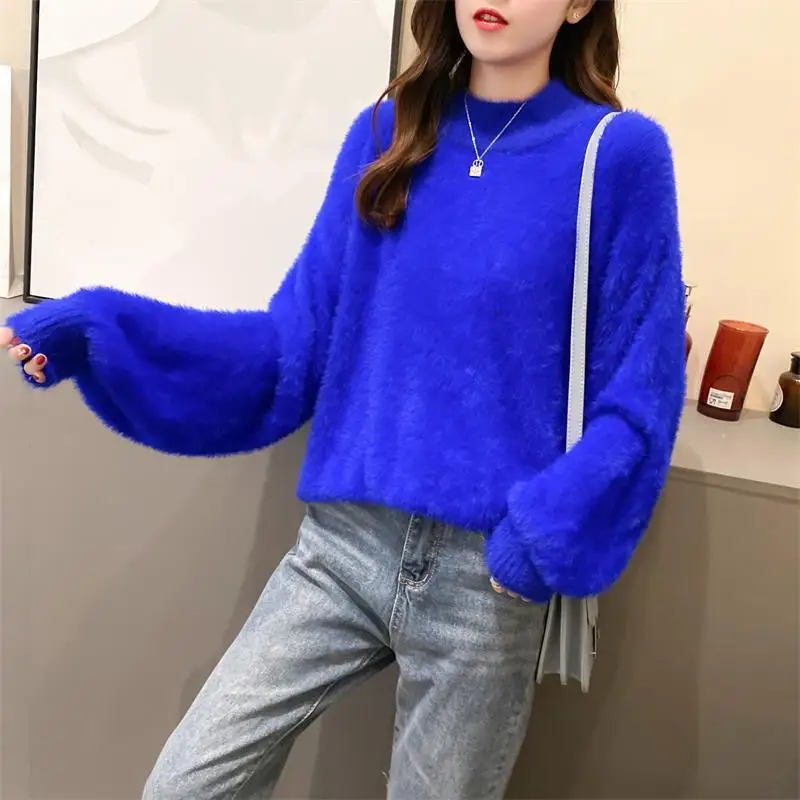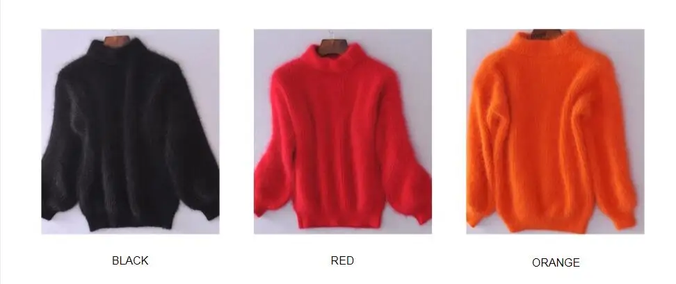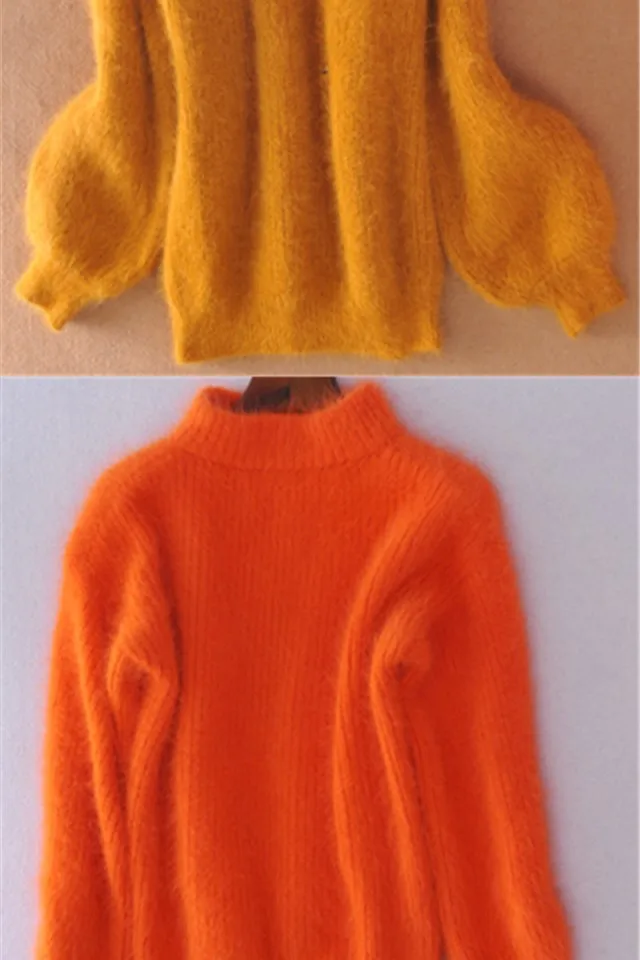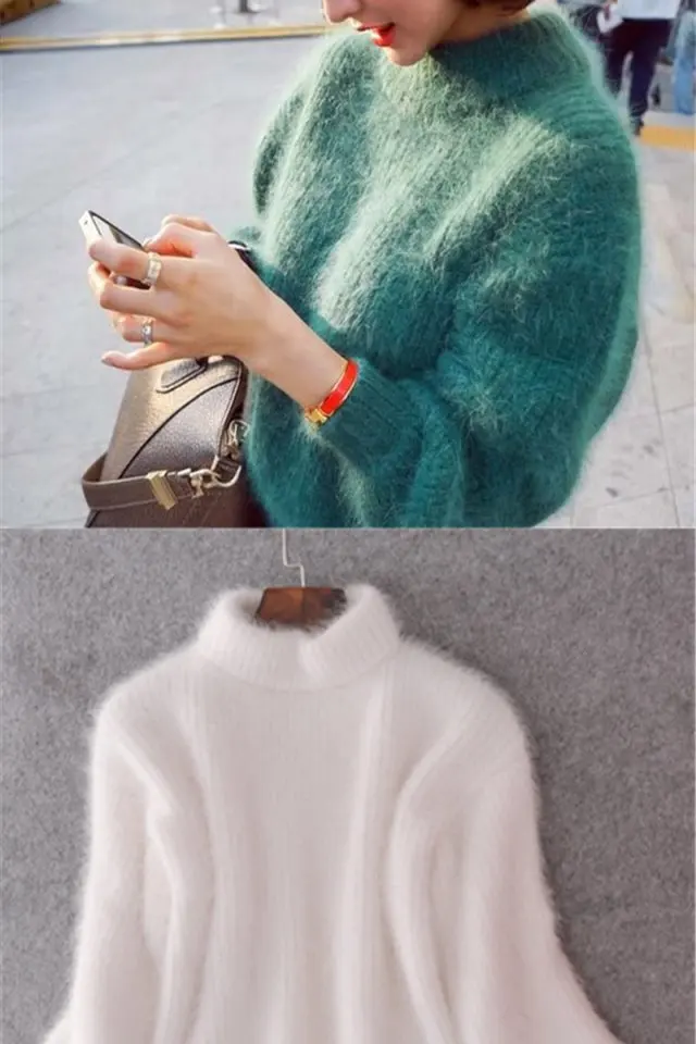 Женский мохеровый свитер с высоким воротником, белый Повседневный вязаный пуловер с рукавами-фонариками, однотонный джемпер для осени и зимы