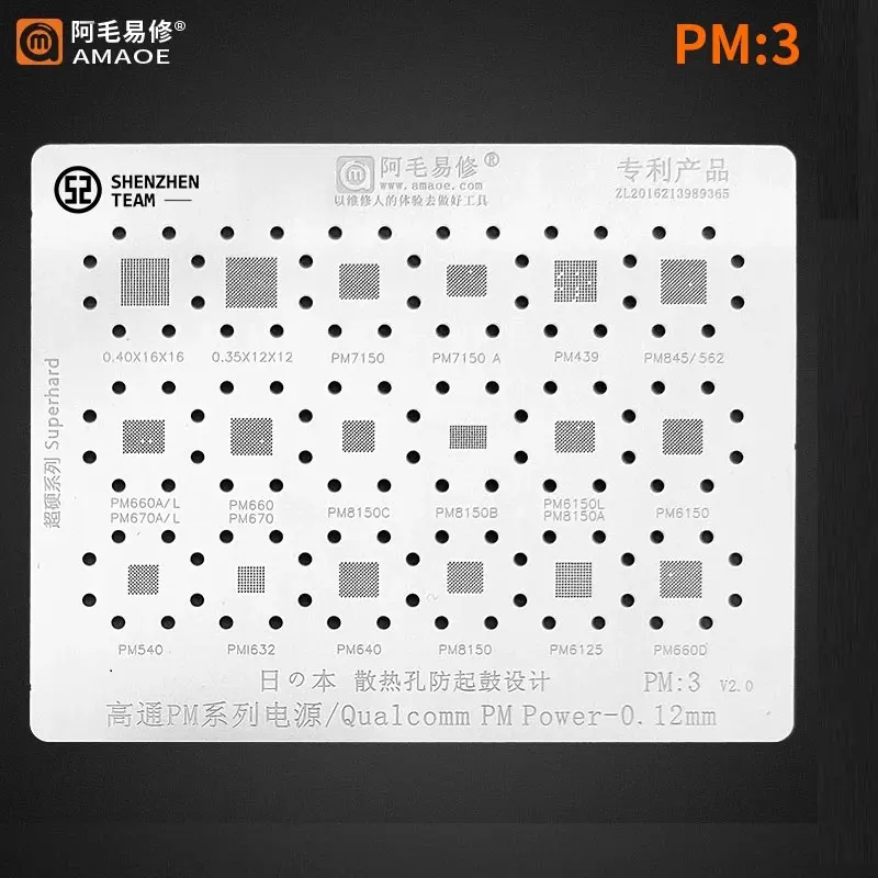 Трафарет AMAOE PM:3, трафарет с чипом Qualcomm Power IC для PM7150, PM439, PM845, PM660, PM670, PM8150, PM6150L, PM6125, PMI632, PM540, 640
