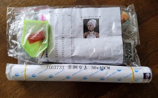 Посылка включает в себя: полностью сверлильный алмаз, ткань с принтом, инструменты