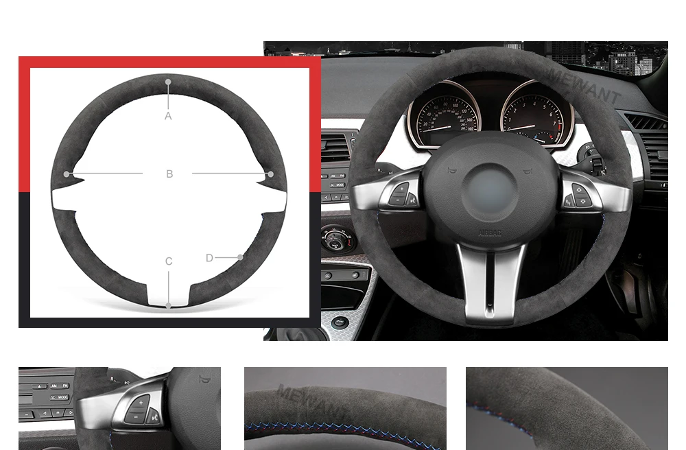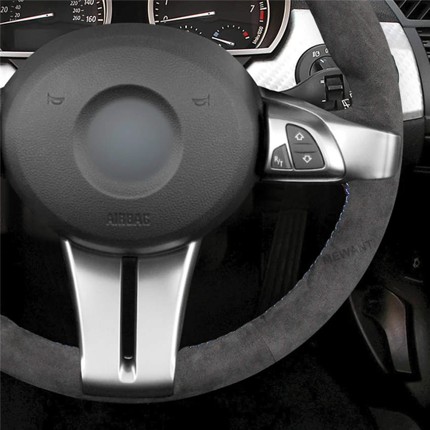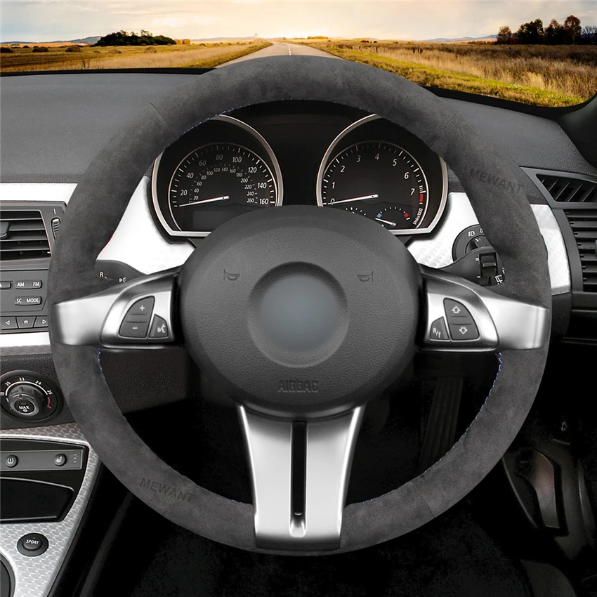 Черный Алькантара темно-серый чехол рулевого колеса автомобиля кобура для BMW Z4 E85 Roadster 2003 2004-2008 E86 Coupe 2005 2006 2007 коса