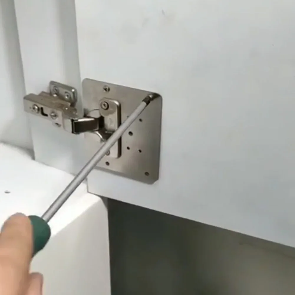 * 5. Пластина крепится к креплению шарнира, что гарантирует, что шарнир надежно фиксируется к двери, и можно использовать боковые панели.