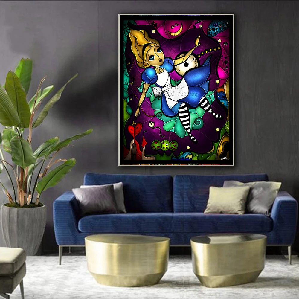 Алмазная живопись Disney Мультфильм Алиса в стране чудес витражный Стиль Искусство 5D DIY мозаика вышивка полный квадратный Декор для дома