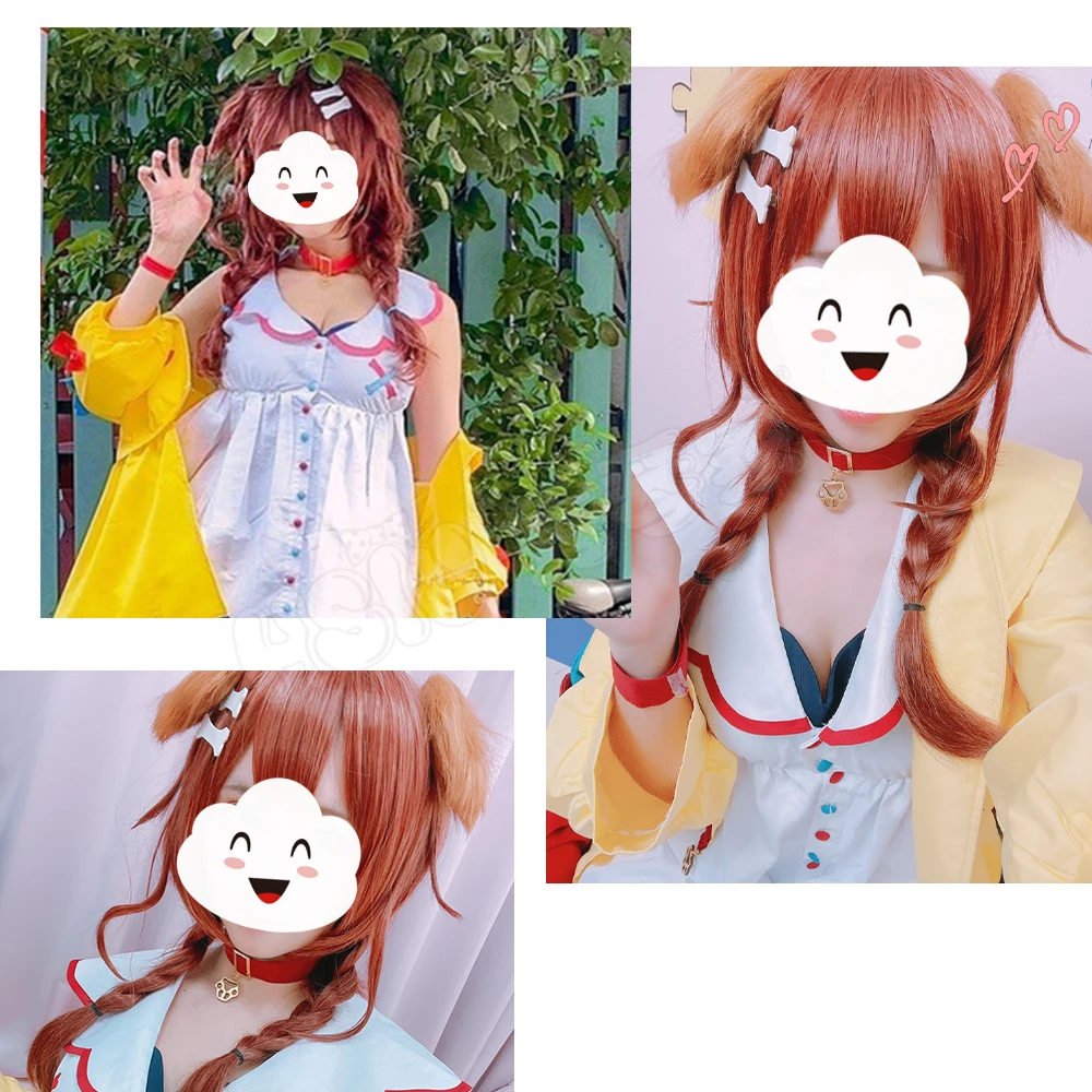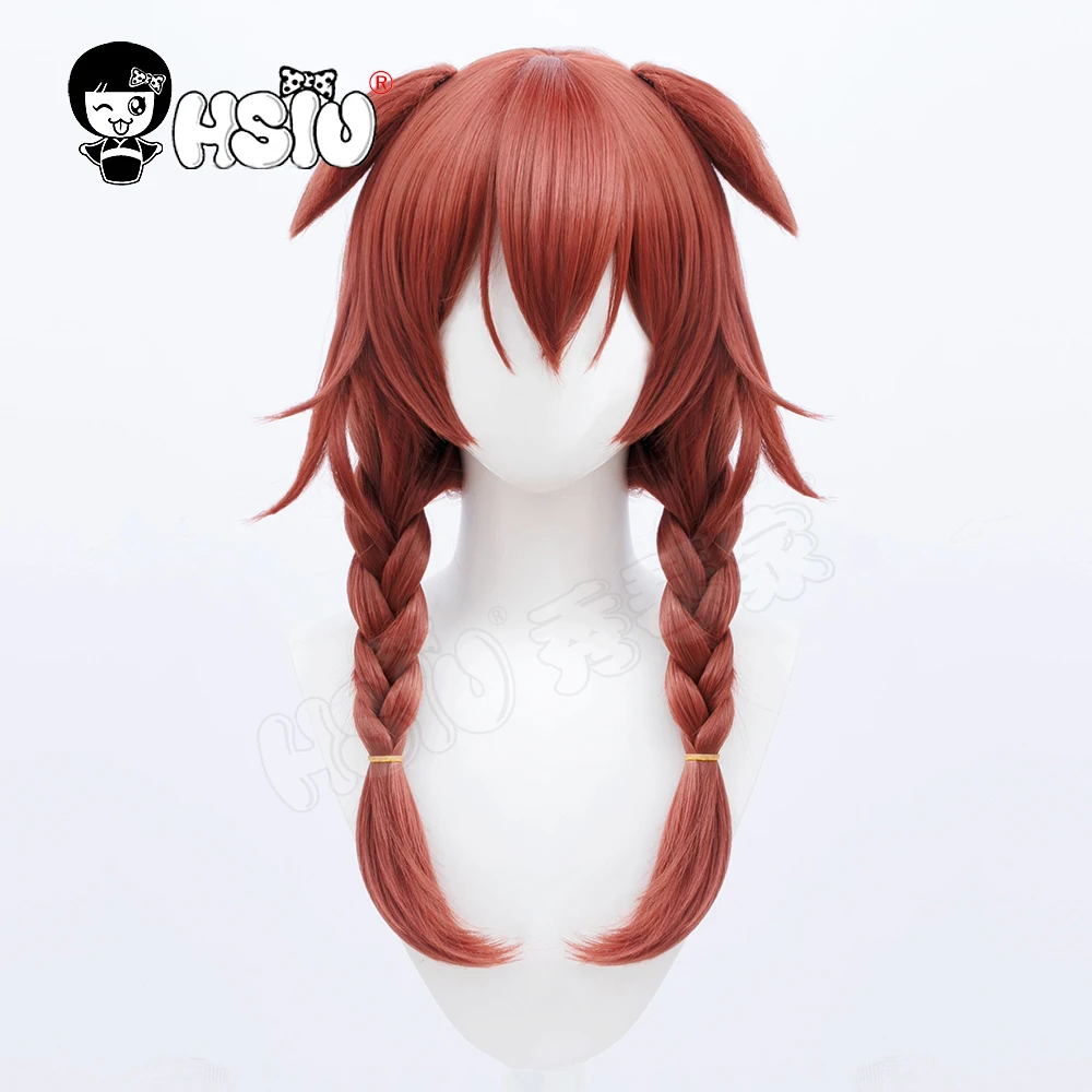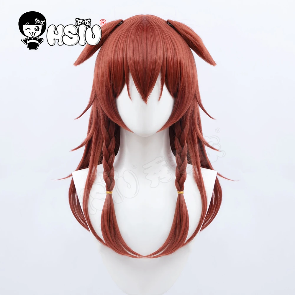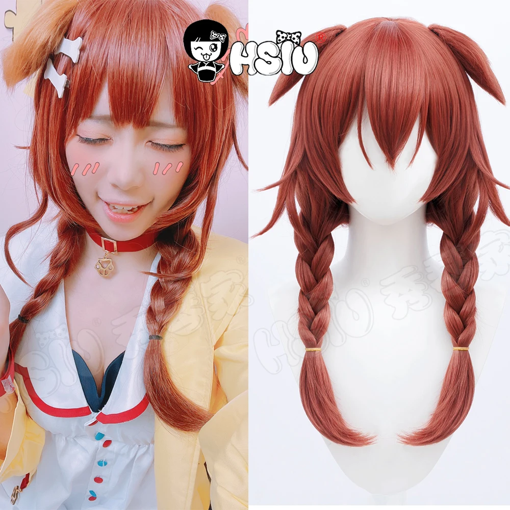 Парик для косплея Inugami Korone VTuber HSIU красновато-коричневый двойной плетеный длинный волос с ушками длинные волосы + бесплатная брендовая шапочка для парика