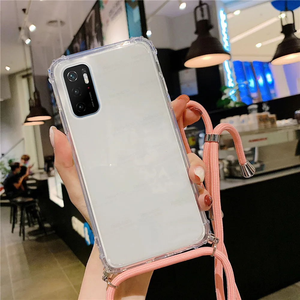Для Xiaomi Poco M3 Pro Чехол прозрачный силиконовый ударопрочный чехол для Xiomi Redmi PocoM3 Pocophone м 3 M3pro ожерелье шнур шнурки с веревкой Coque