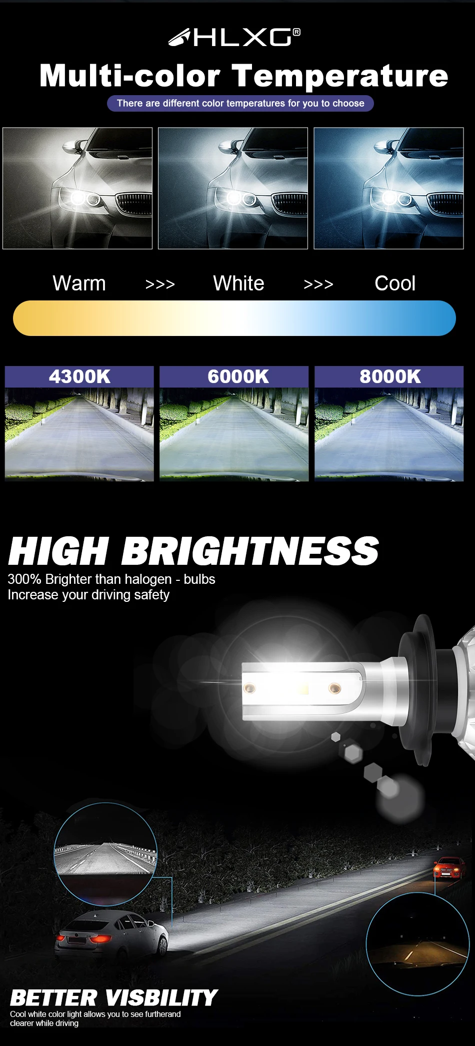 1. Мини-размер2. С умным Драйвером3. Чипы COB4. Люмен: 12000 лм5. 1 год гарантии6. 4300K, 6000-6500K, 8000K