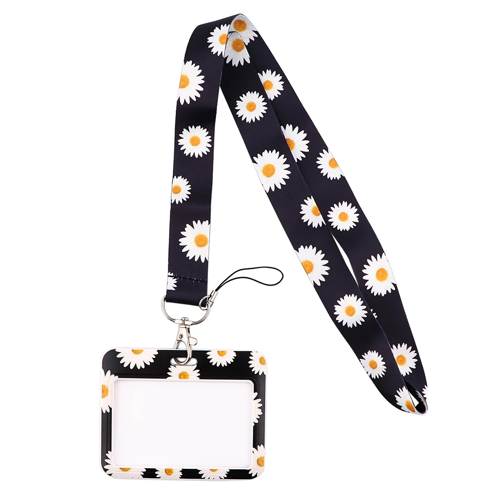 JF663 маленький белый шнурок с маргариткой, держатель для кредитных карт, бейдж для студентов, путешествий, банковский автобус, Обложка для визиток, бейдж