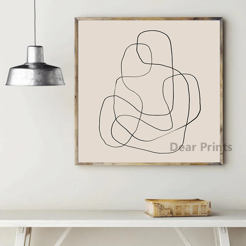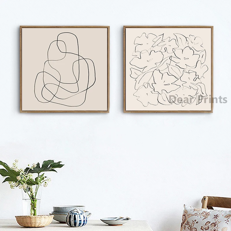 Минимальный Ботанический рисунок, рисунок, бежевый, бохо, абстрактная тонкая линия, Картина на холсте, современный постер, настенные картины для декора