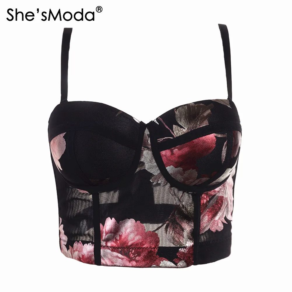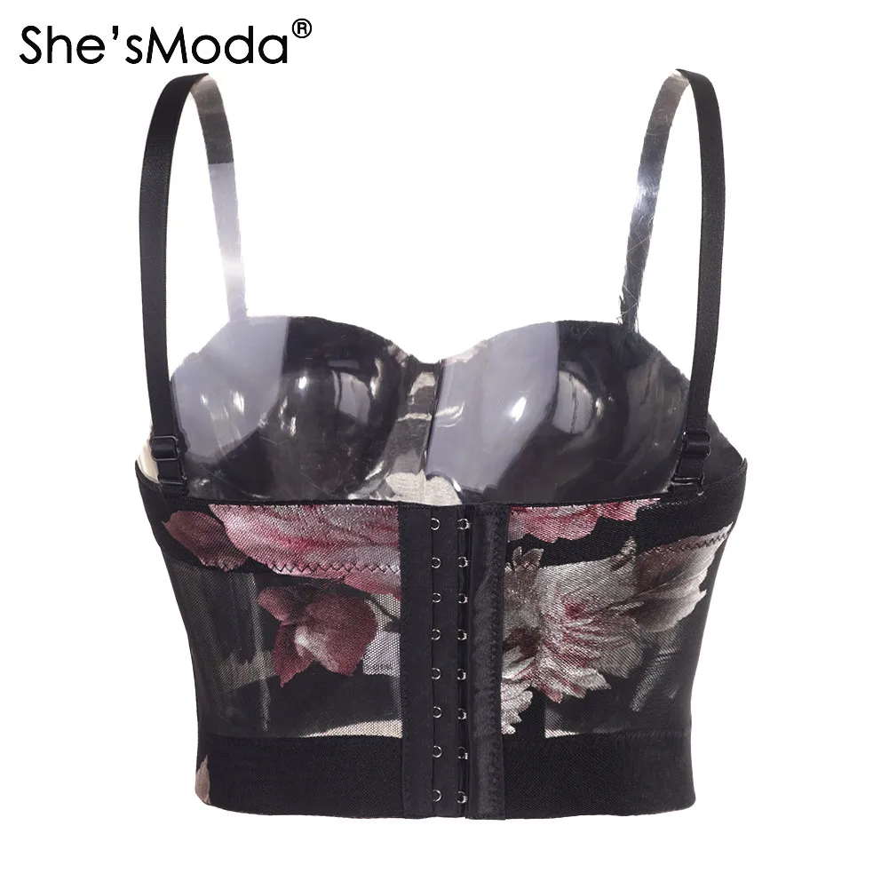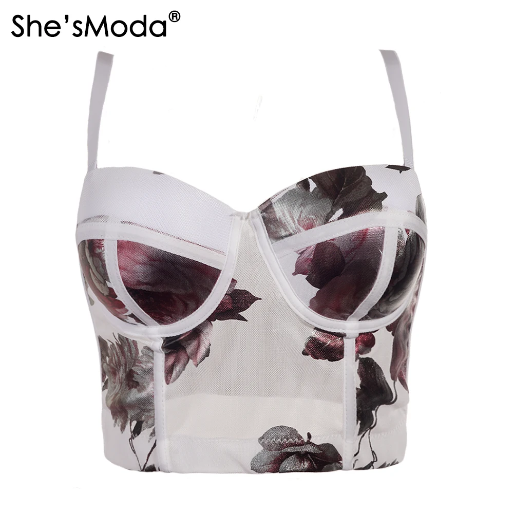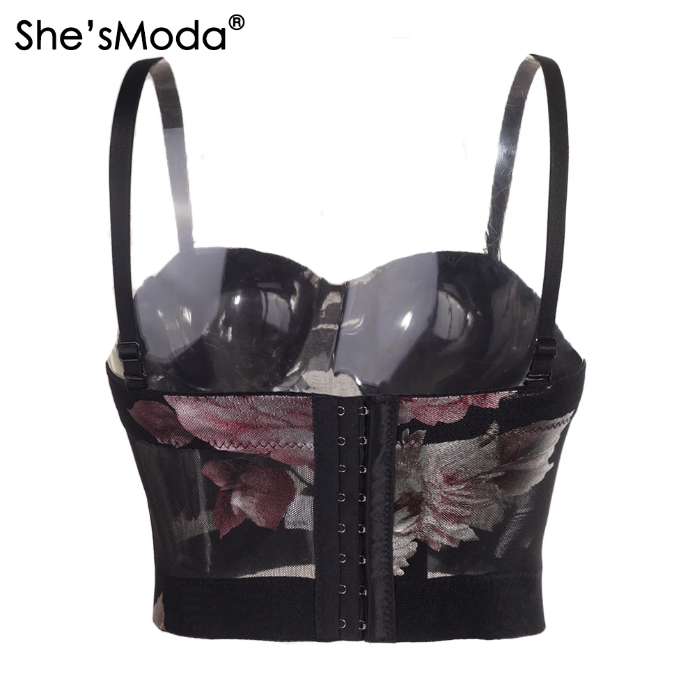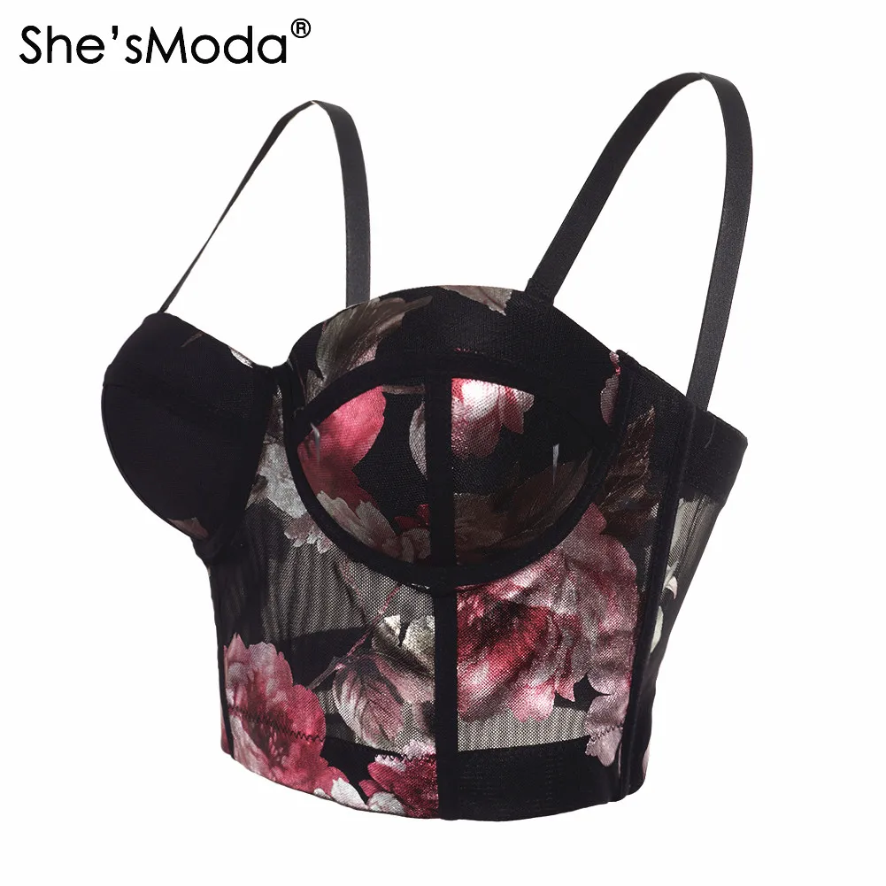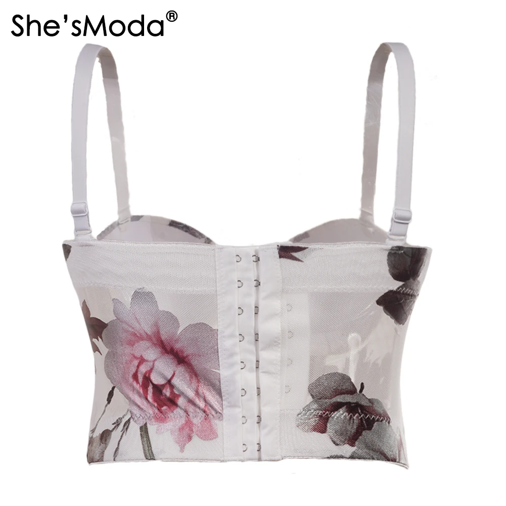 She'sModa 2021 летние сетчатые Цветочный принт корсет Для женщин бюстгальтер бюстье для ночного клуба вечерние укороченные топ, жилет размера плюс