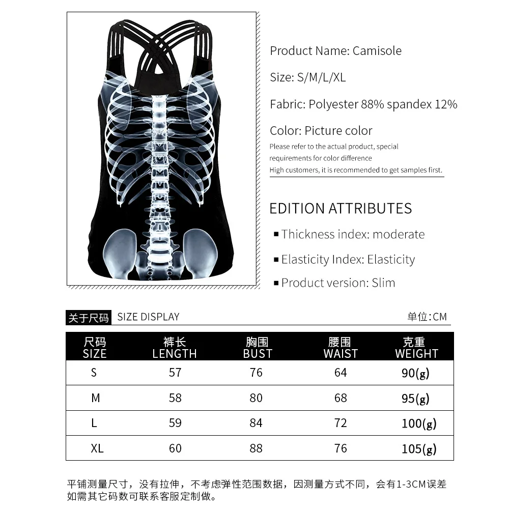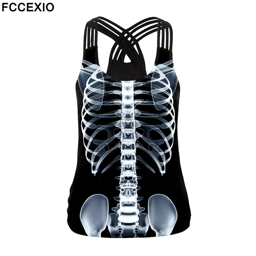 FCCEXIO Сексуальная бандажная флуоресцентная Женская майка с принтом скелета, майка для фитнеса, черный топ без рукавов с лямкой на спине для девушек