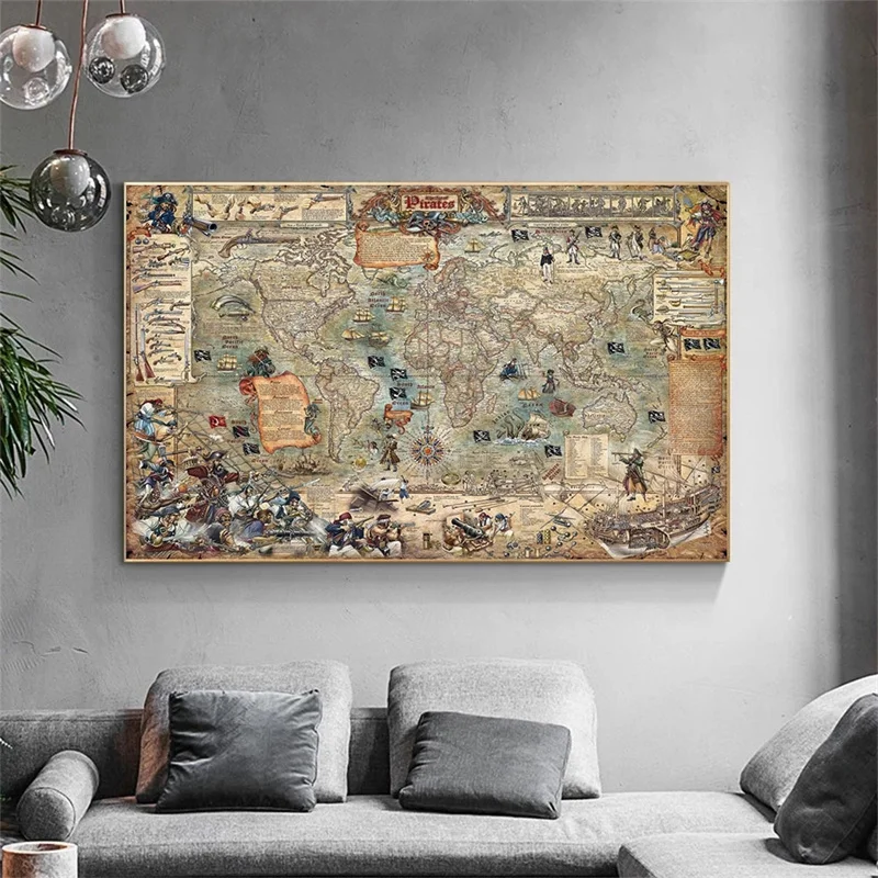 Винтажное старое художественное украшение для дома, Карта мира, кар...