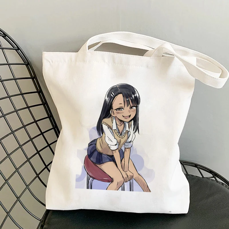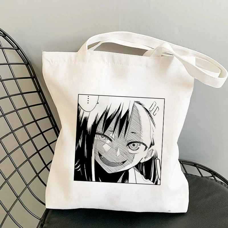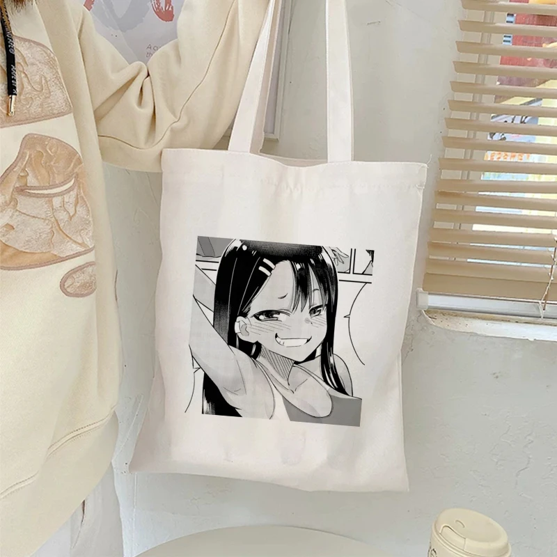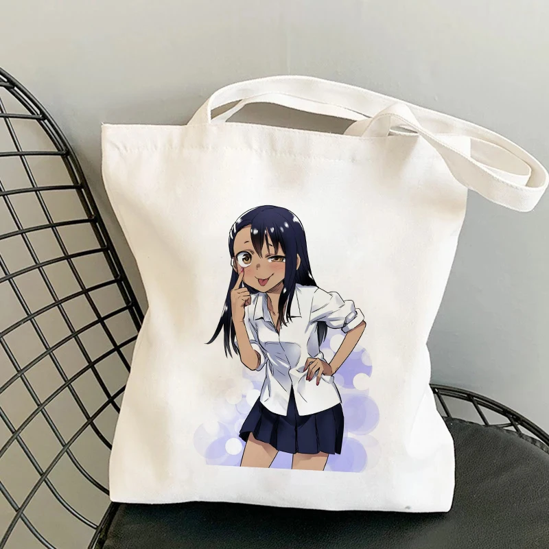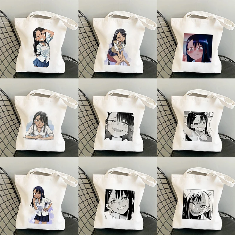 Мультяшные сумки-шопперы с японским аниме, забавные, пожалуйста, не гарите меня, сумки Nagatoro, сумки через плечо, холщовая женская сумка-шоппер