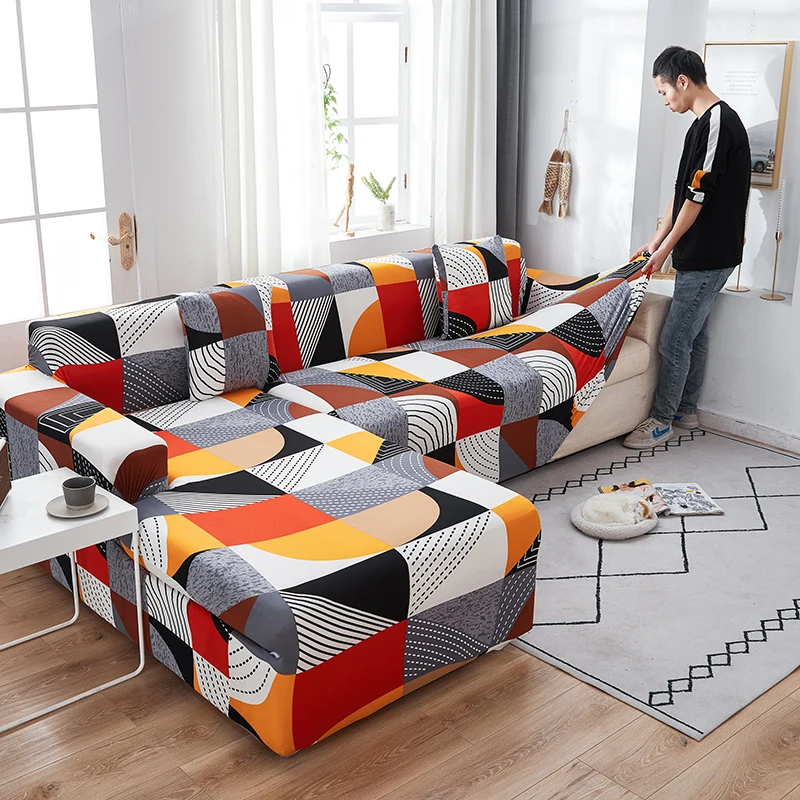 Растягивающийся чехол для дивана с геометрическим рисунком, съемный чехол для дивана на 1234 сиденья, угловой диван, диван, шезлонг