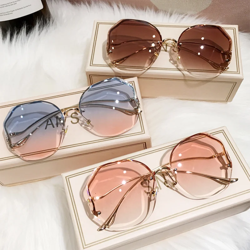 Женские солнцезащитные очки с градиентными линзами, солнцезащитные очки с металлическими изогнутыми дужками и оправой UV400, 2021