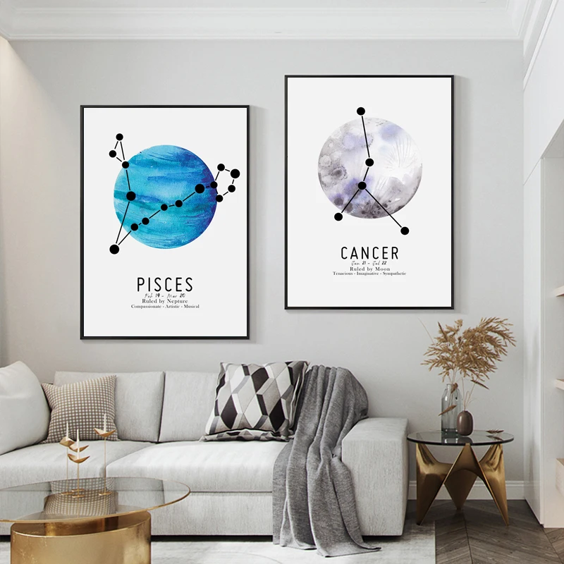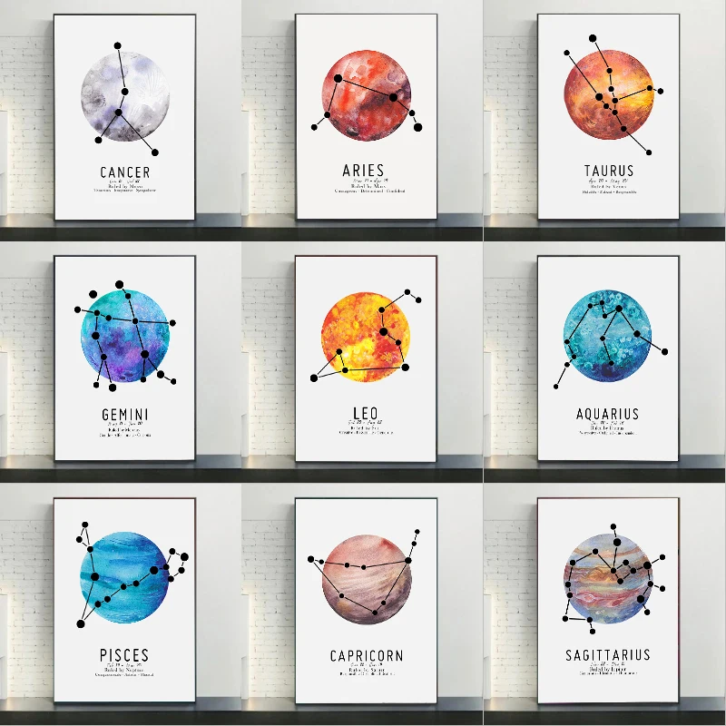 Картина на холсте, 12 знаков зодиака, Созвездие и планета, современные плакаты и принты, Настенная картина, декор для гостиной, прохода