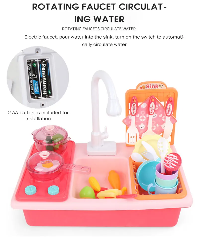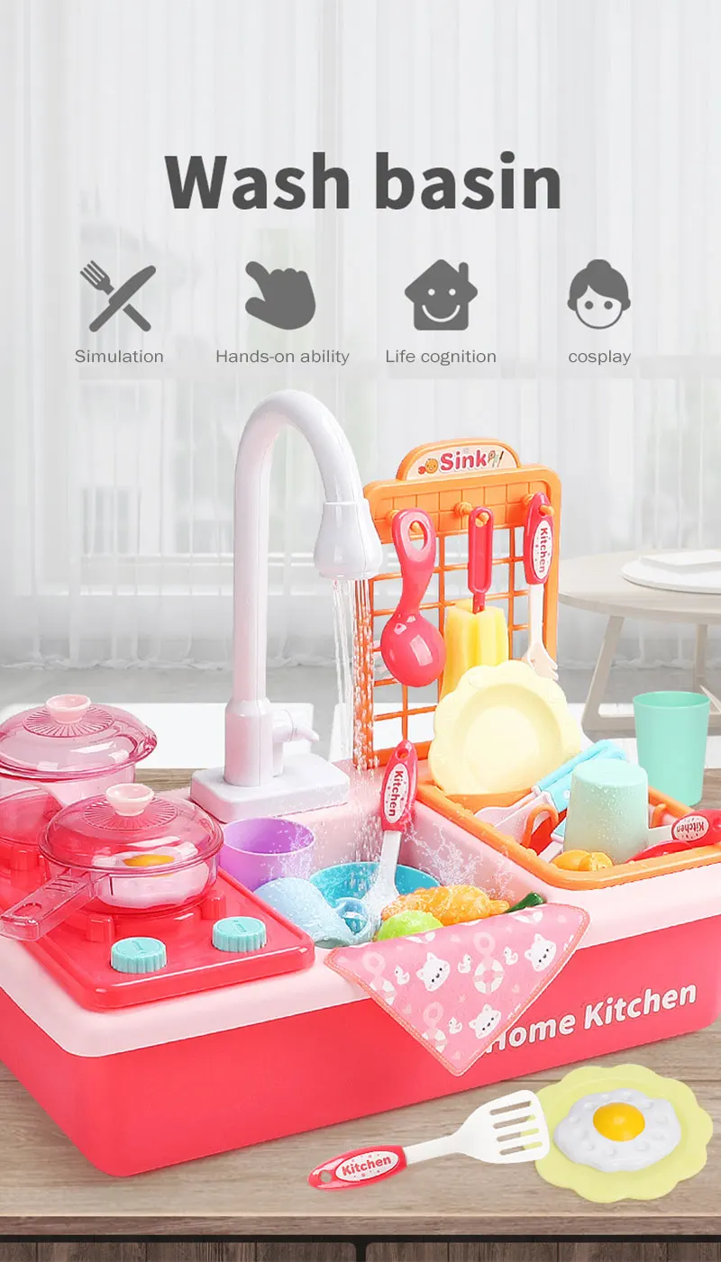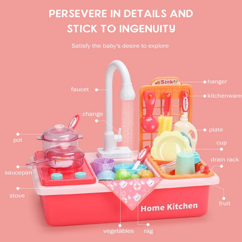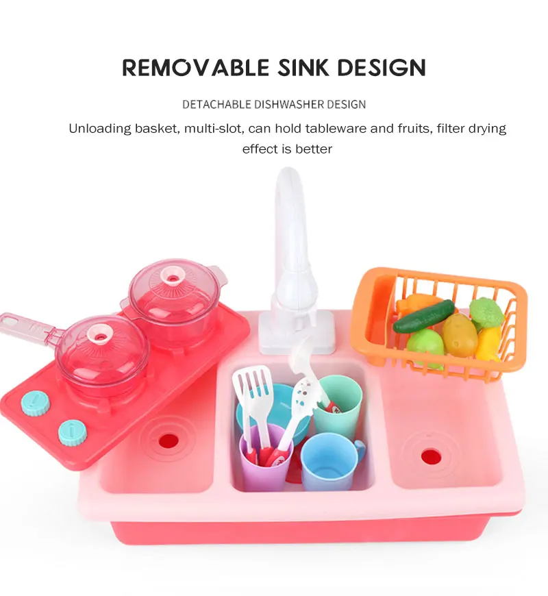1. Богатые аксессуары для детей могут дать полное представление о своем воображении2. Поверните кран, чтобы циркулировать воду, Электрический кран, налейте воду в раковину, включите кран, чтобы циркулировать воду3. Лучшие Кухонные Игрушки для детей: это игрушка для мытья кухонной раковины для детей, чтобы научиться мыть блюда. Дети могут не только наслаждаться домашней работой, но и развивать свои практические возможности. Позвольте им научиться помогать своим родителям делиться домашней работой.4. Имитация кухонного игрового набора: Изготовлен из АБС-материала, гладкий край без заусенцев, без запаха зеленый и безопасный для детей.