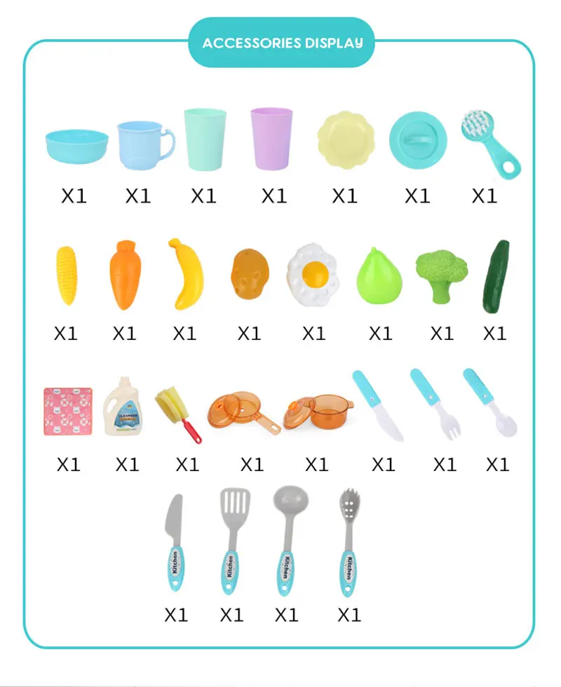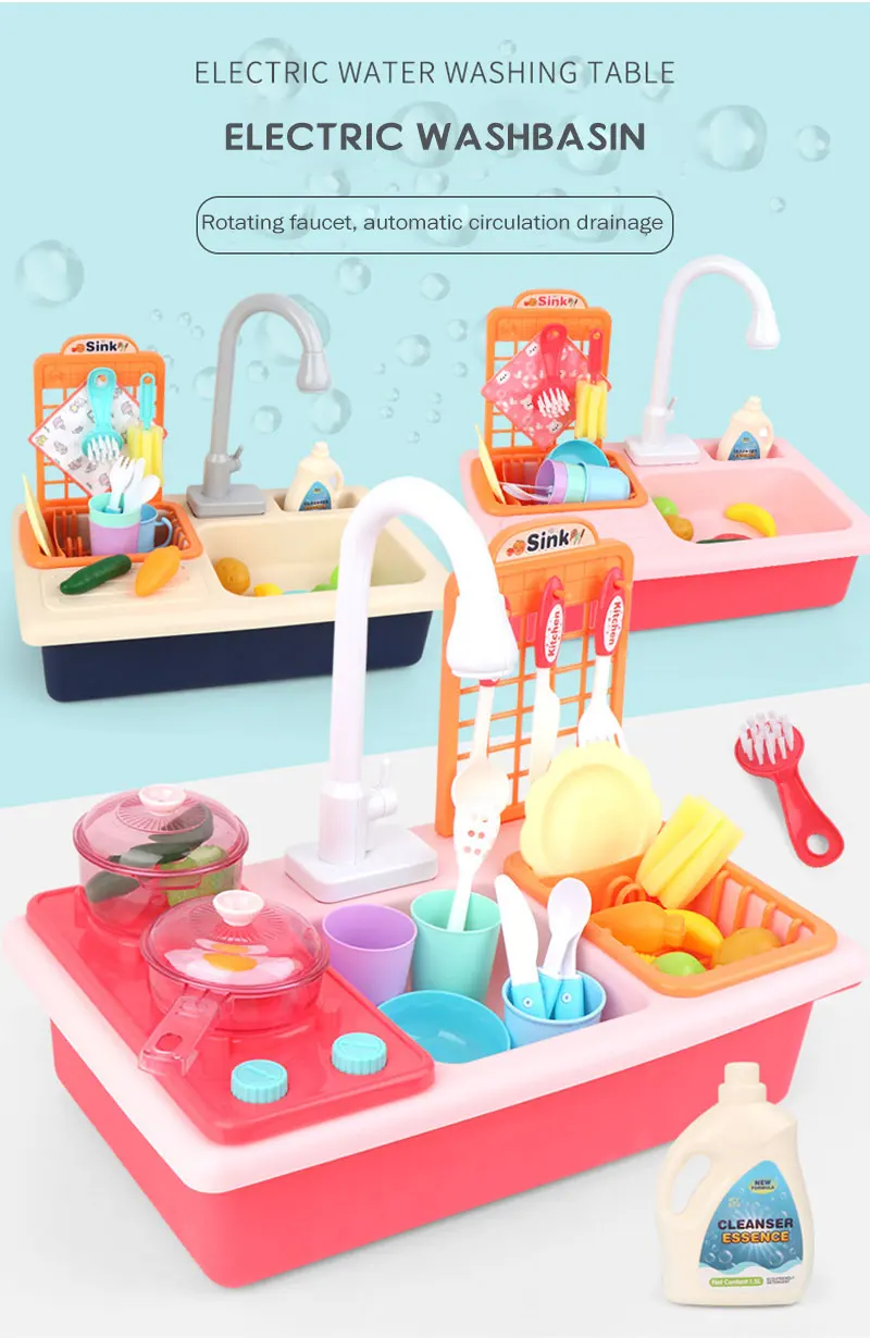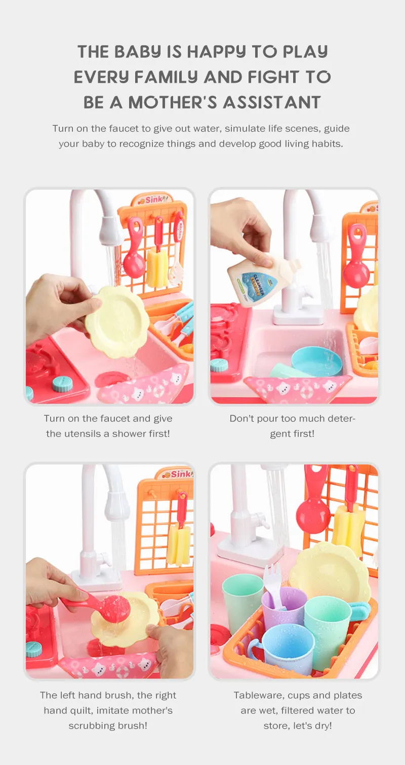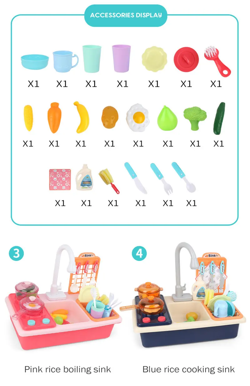 1. Богатые аксессуары для детей могут дать полное представление о своем воображении2. Поверните кран, чтобы циркулировать воду, Электрический кран, налейте воду в раковину, включите кран, чтобы циркулировать воду3. Лучшие Кухонные Игрушки для детей: это игрушка для мытья кухонной раковины для детей, чтобы научиться мыть блюда. Дети могут не только наслаждаться домашней работой, но и развивать свои практические возможности. Позвольте им научиться помогать своим родителям делиться домашней работой.4. Имитация кухонного игрового набора: Изготовлен из АБС-материала, гладкий край без заусенцев, без запаха зеленый и безопасный для детей.