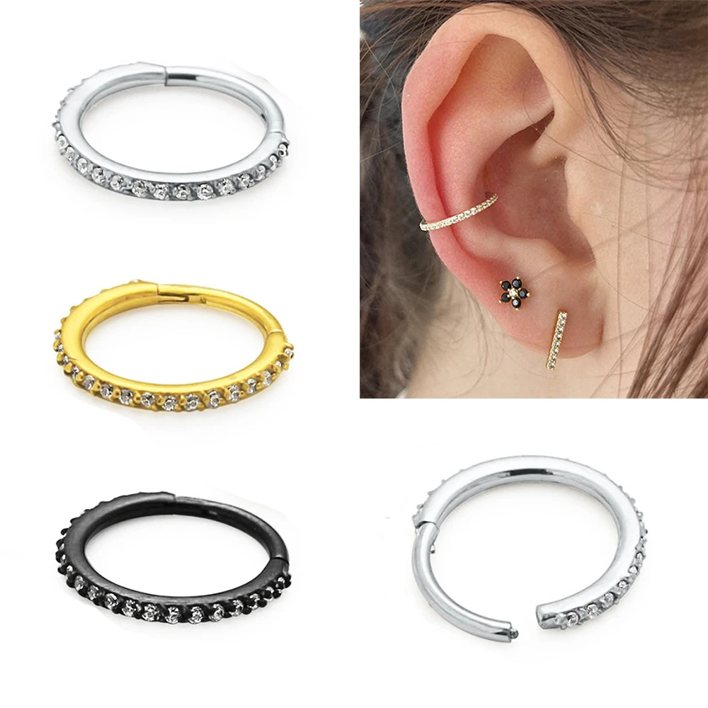 316L хирургические Сталь сегмент нос кольцо ложная перегородка кликер раковины кольцо серьги, Надеваемые На ушной хрящ Циркон из нержавеющей стали, серьги-кольца, бижутерия для пирсинга