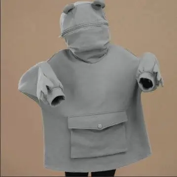 Пуловер в форме лягушки, толстовка с большими карманами, Осень-зима...