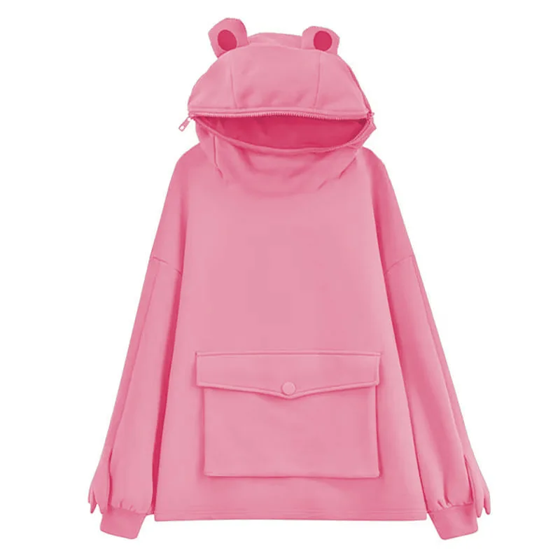 Женская толстовка с капюшоном Kawaii Frog Over size d Harajuku, осе...