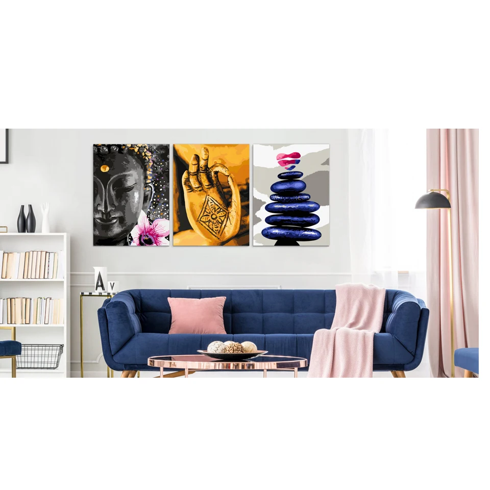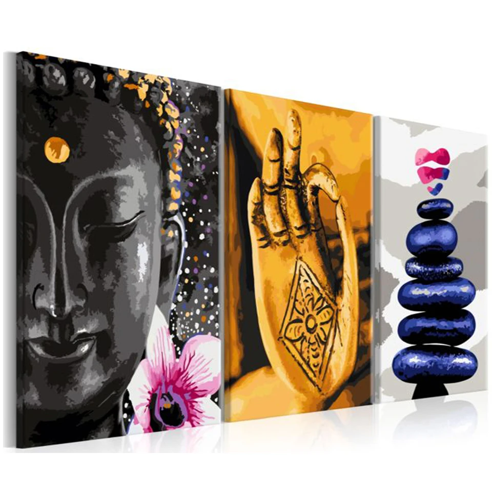 Восточный Триптих Орхидея Будда алмазов картина Алмазная мозаика, алмазная вышивка продажи 5d Diy картина Стразы для рукоделия подарок Декор для дома