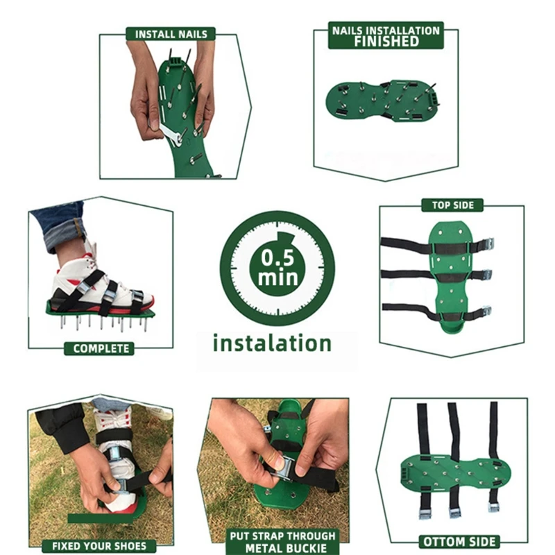Аэратор для газона с регулируемыми ремешками, сандалии для почвы, для ногтей, садоводства, прогулок, пластиковая обувь с шипами