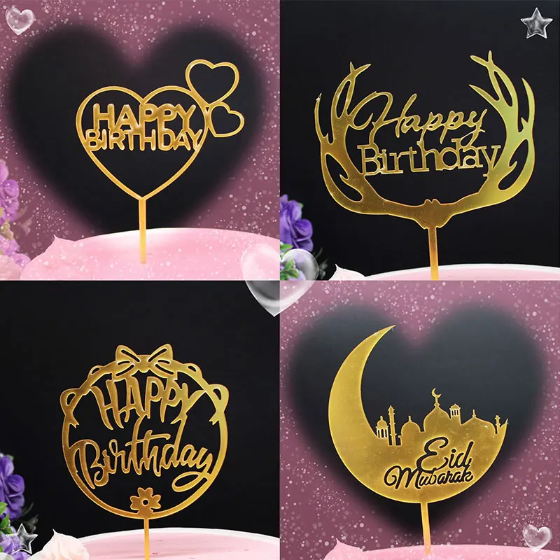 Стильный золотой акриловый Топпер для торта, вставка, карточка для ...