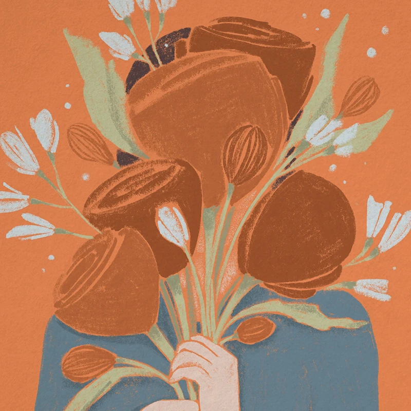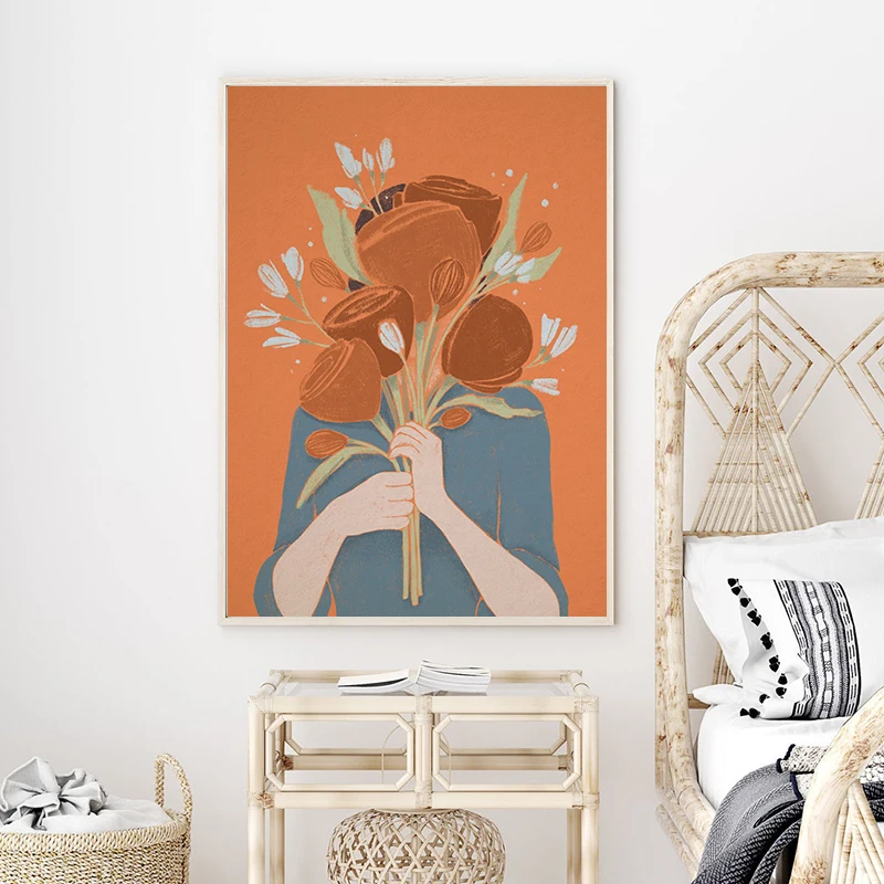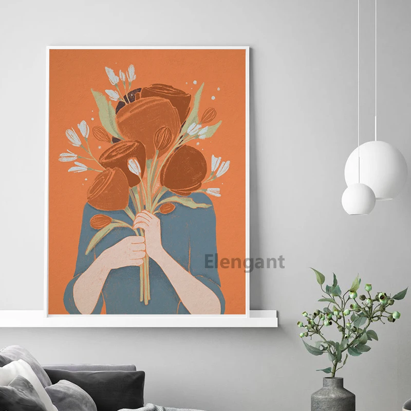 PurposeWoman Orange Flower Bouquet Art Painting Picture Decor