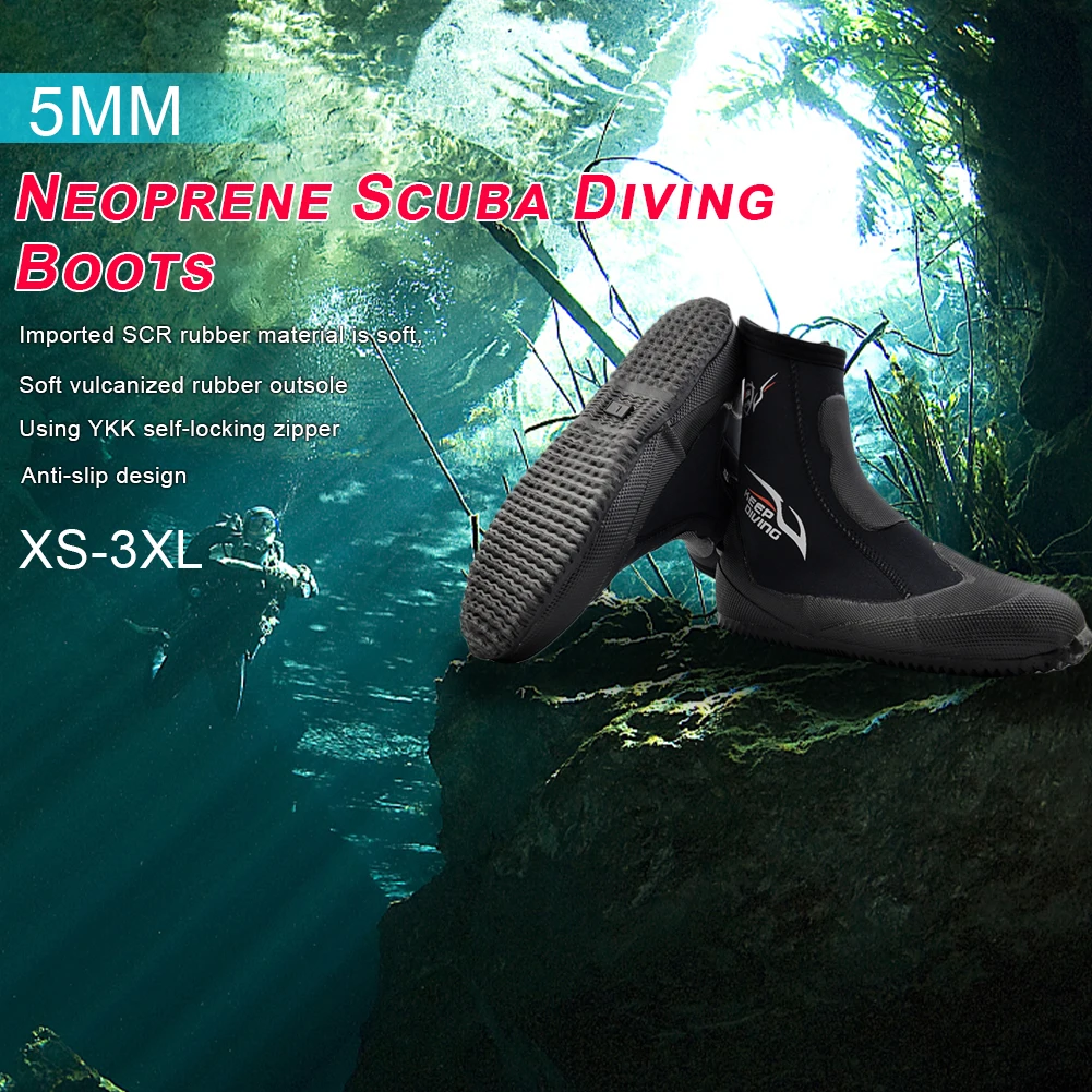 5 мм неопреновые ботинки для дайвинга с аквалангом; Водная обувь для вулканизации; Зимняя обувь с защитой от холода; Высокие теплые ласты; Обувь для подводной охоты