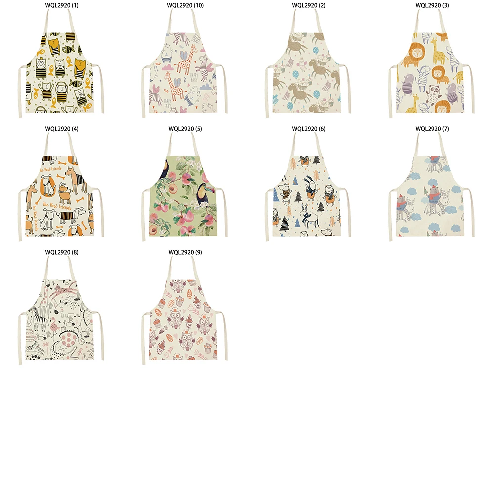Фартуки из хлопка и льна с цветочным принтом и милыми животными, фа...