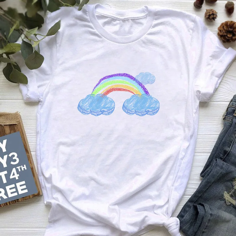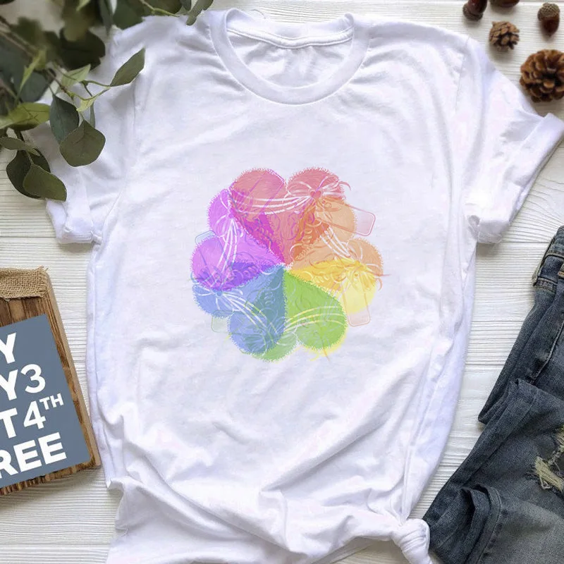 Женская футболка с радужным принтом, футболка с коротким рукавом для девочек, модная мультяшная футболка, летняя одежда, футболка с графическим принтом в стиле Харадзюку