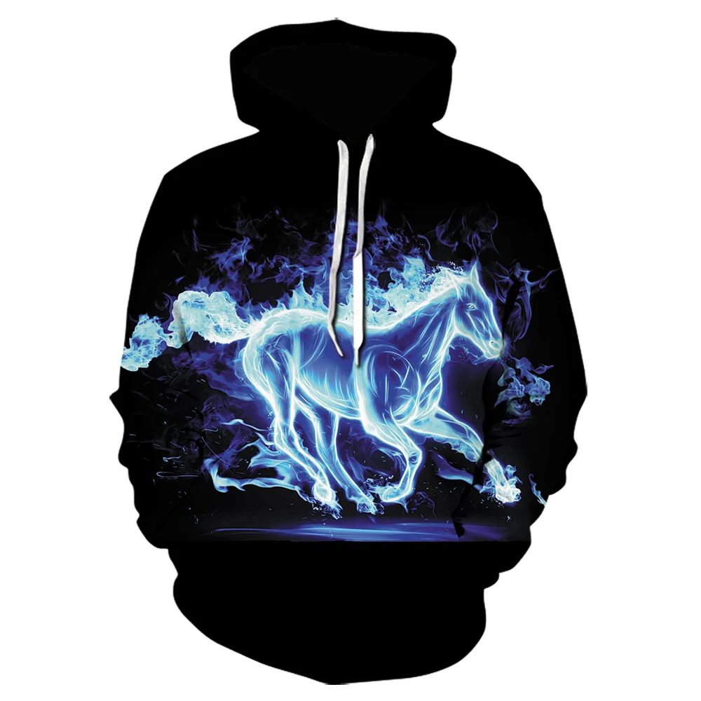 Худи лиса с мультяшным 3D-принтом, толстовка с капюшоном в стиле Харадзюку, с изображением лошадей, Мужская популярная новинка 2021, Забавные топы, куртка, спортивная одежда