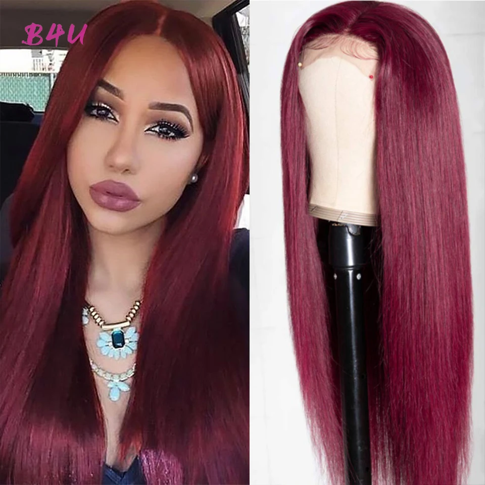 Перуанские 99J прямые волосы 13*4 парик фронта шнурка 10-30 дюймов бордовый 4*4 закрытие шнурка человеческие волосы парики предварительно выщипанные для черных женщин