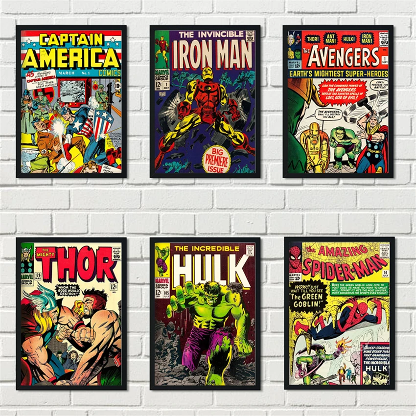 Постеры в стиле ретро Супергерои из классического фильма Мстители: ...