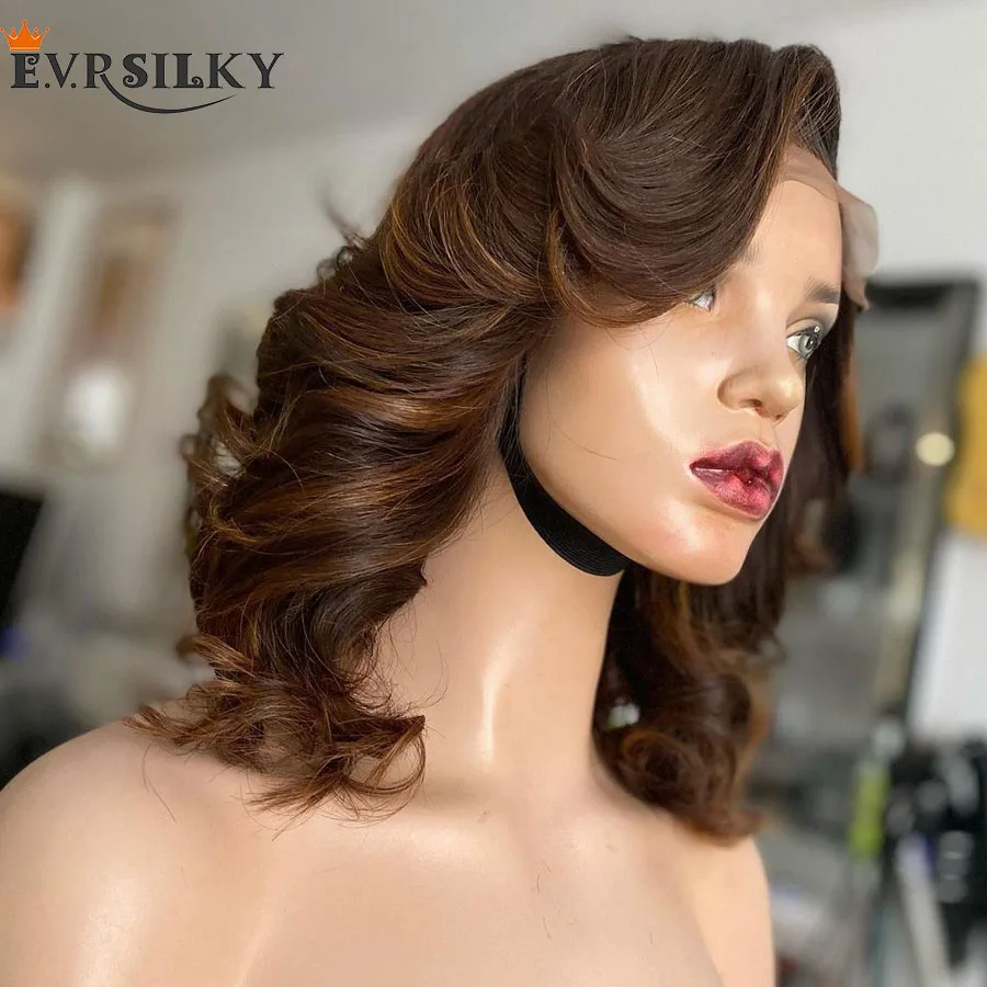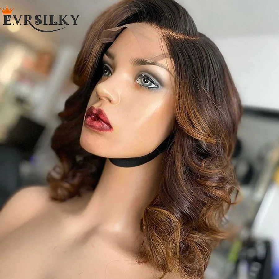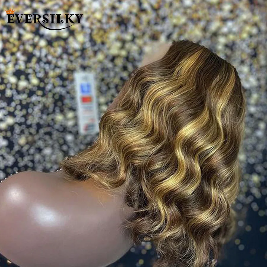 Индийский короткий Боб тела волна хайлайтер медовый светлый 360 кружевной передний искусственный 150 Плотность 12 дюймов 13x 6 кружевные передние парики