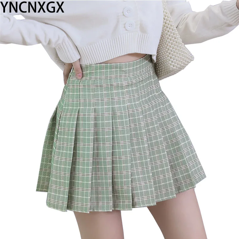 Женская плиссированная юбка в клетку, клетчатая мини-юбка в стиле Харадзюку, милая зеленая клетчатая юбка с высокой талией в Корейском стиле, студенческие шорты