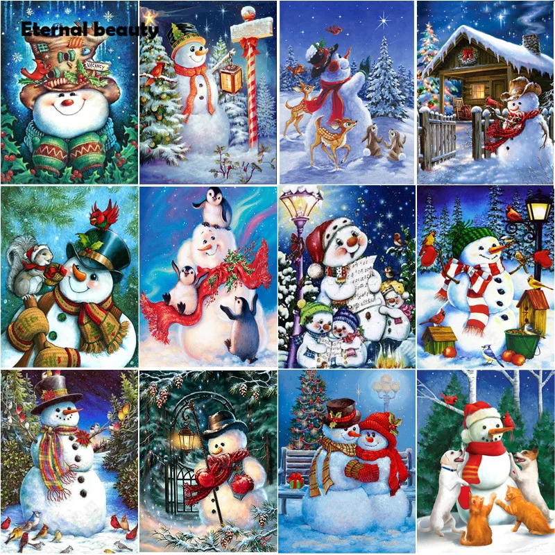 Алмазная живопись Рождественский Снеговик, наборы для вышивки крестом, зимняя мозаика 5D сделай сам, для домашнего рождественского декора