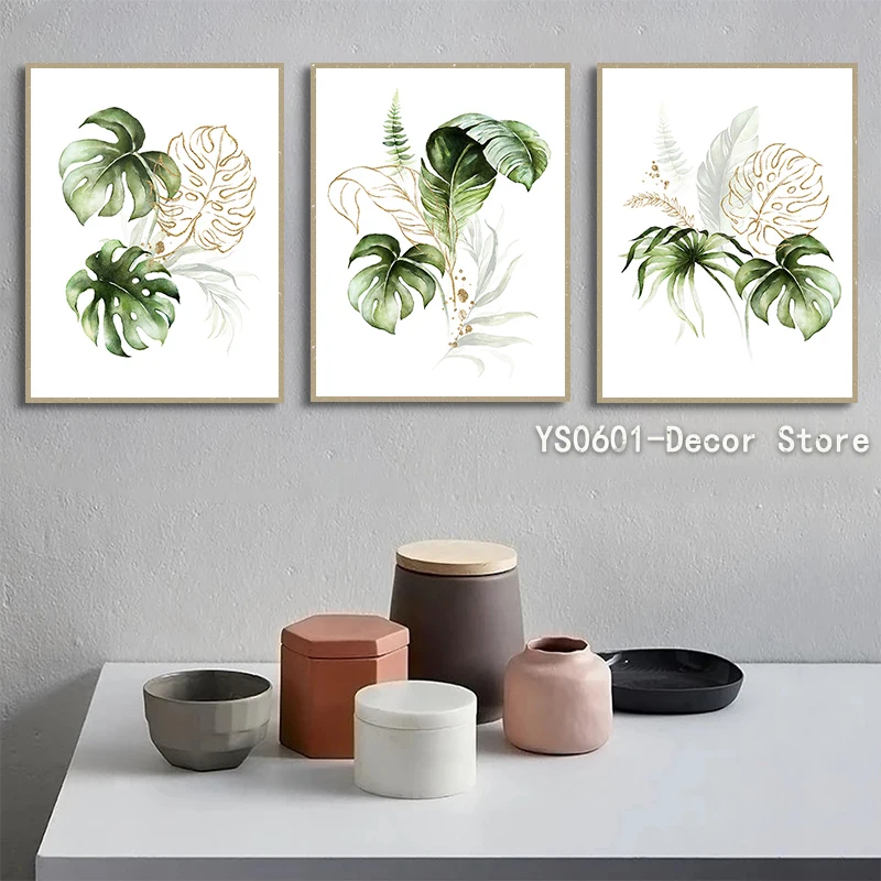 Постер на холсте с зелеными растениями и листьями, скандинавский ст...