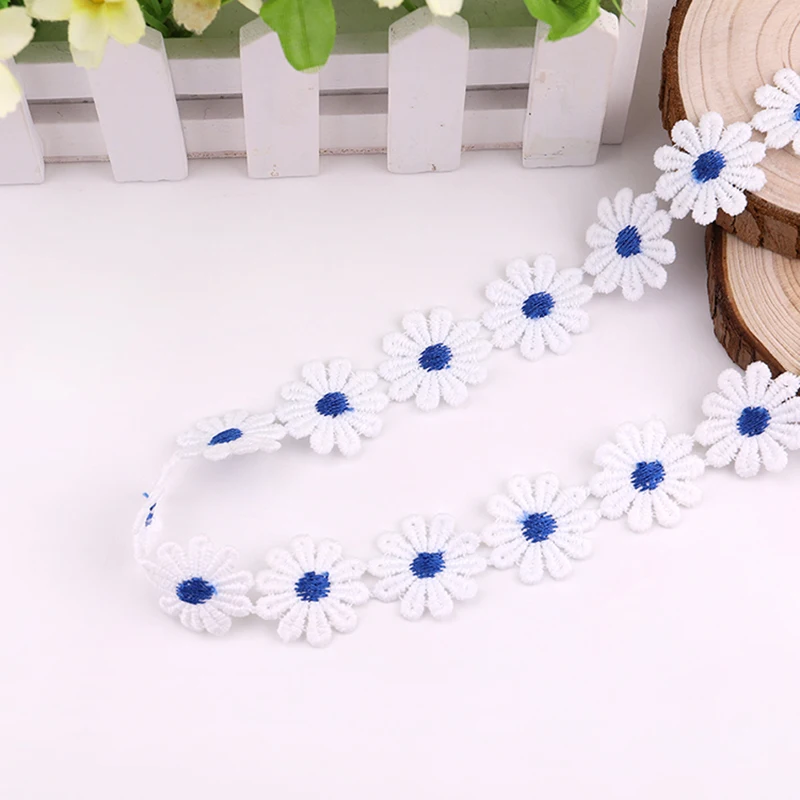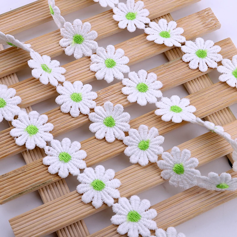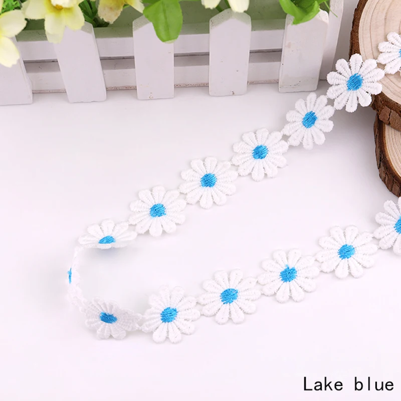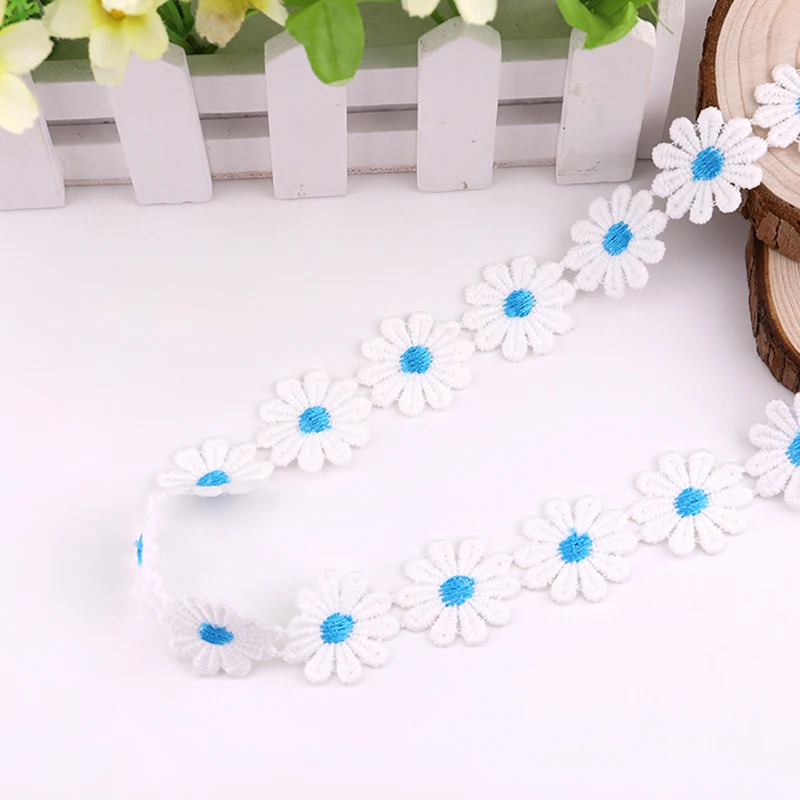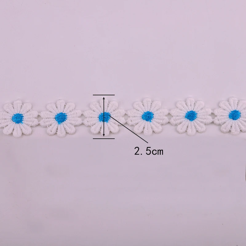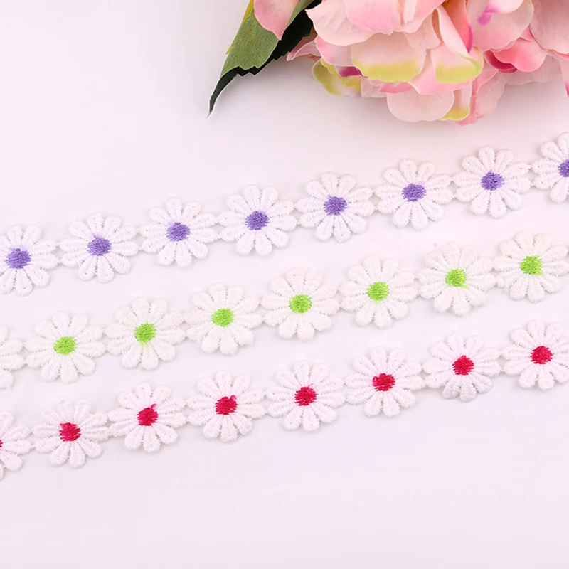 2 ярдов Цветной 2,5 см лента с маргаритками с кружевной окантовкой; Трикотажная одежда Швейные аксессуары ручной работы с кружевной вышивкой