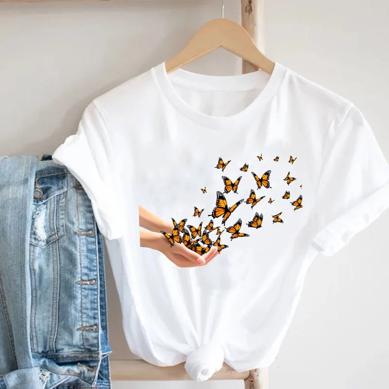 2021 женская футболка с принтом бабочки Vestidoes для детей Женский футболки 90s с коротким рукавом Повседневная Уличная мода для женщин футболки размера плюс XXXL