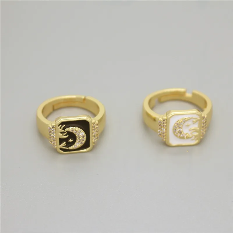 Женское Открытое кольцо с кристаллами, черное или белое Винтажное кольцо с эмалью и квадратным полумесяцем, 1 шт.
