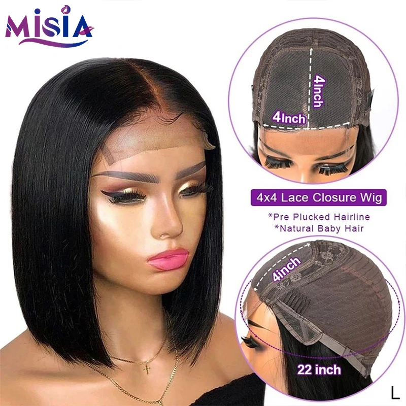Прямые парики из человеческих волос, 4x4, парики на сетке, прямые короткие волосы, Детские волосы для женщин, бразильский парик