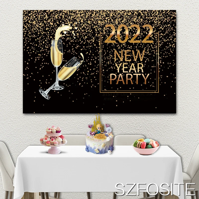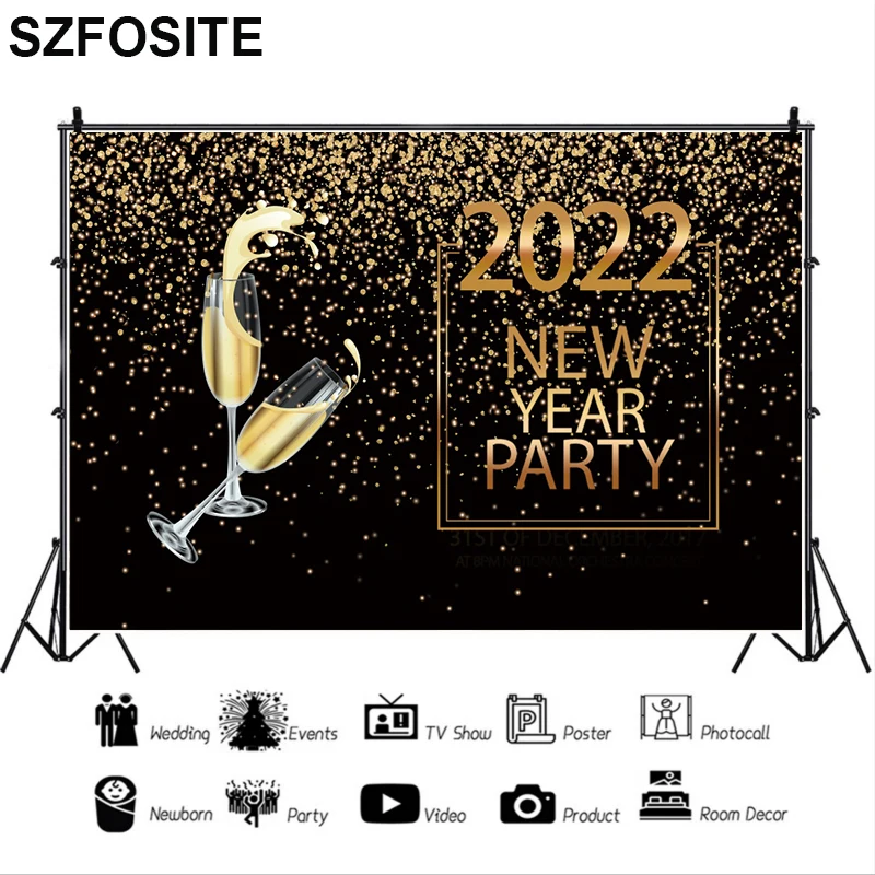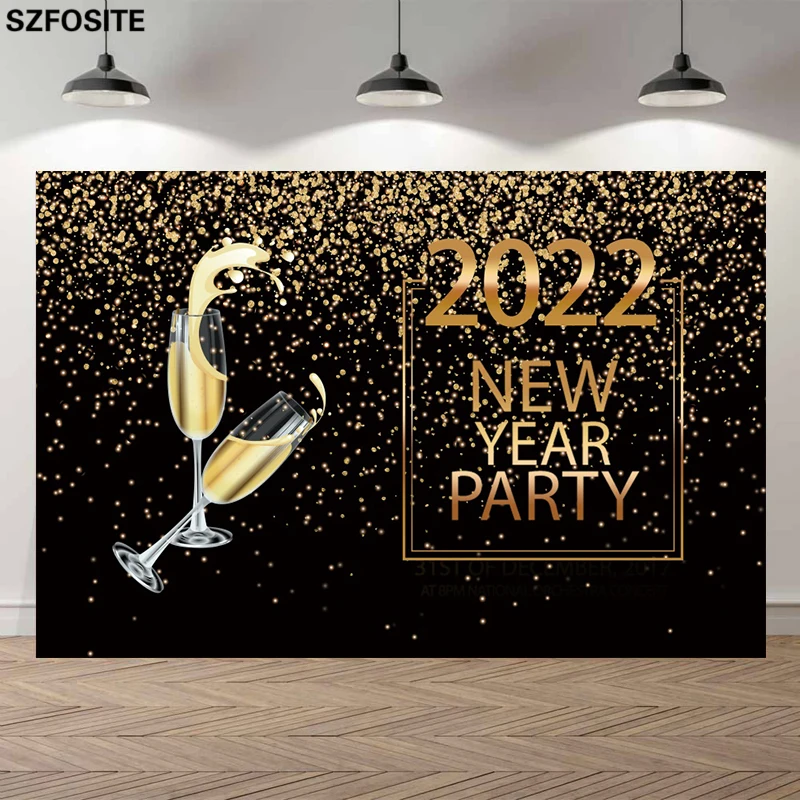 С Новым Годом 2022 Золотой Блестки черный фон фестиваль друзья вечерние НКА бокал шампанского тема фото Дети фотография фон