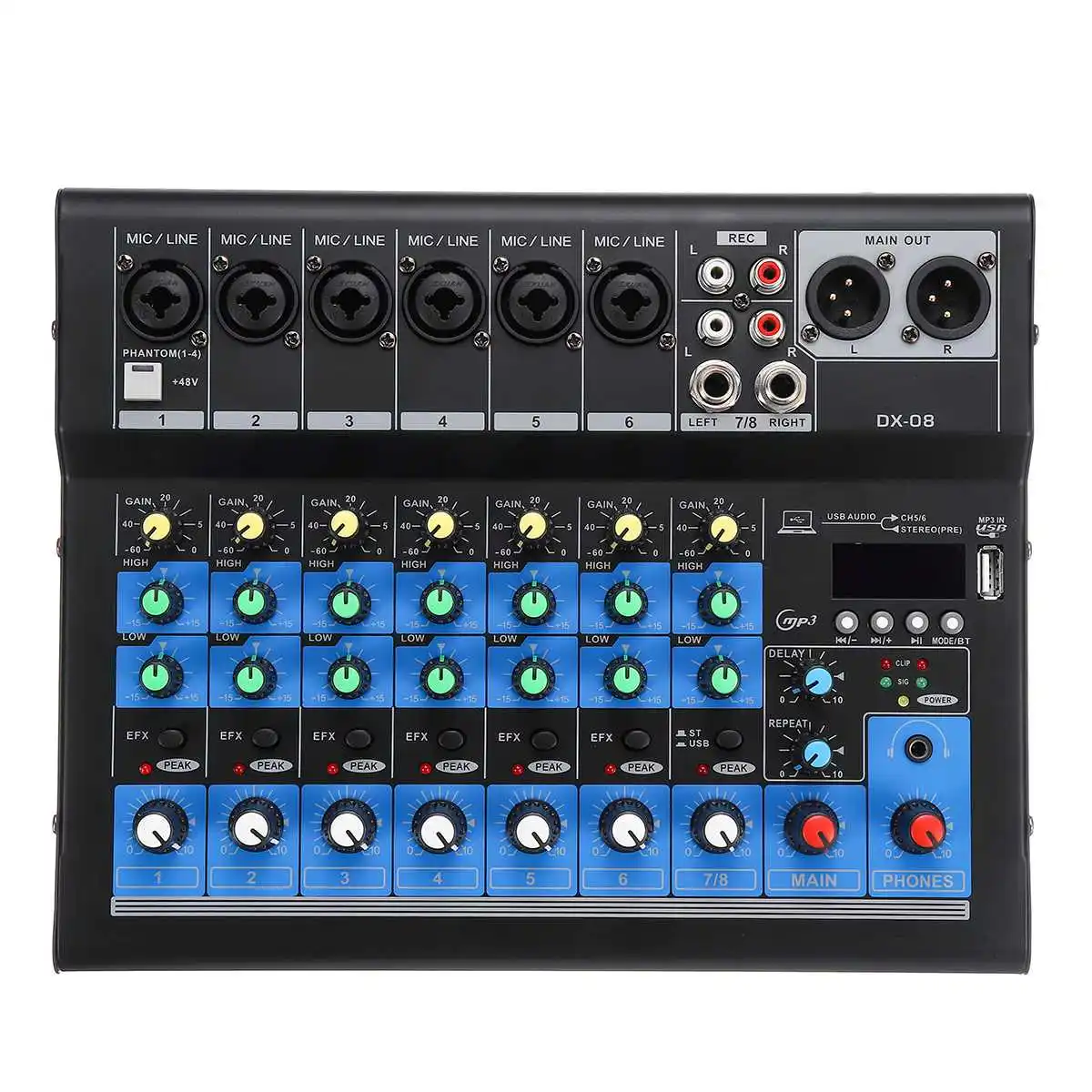LEORY 8-канальный сетевой видеорегистратор bluetooth цифровой Микрофон Звук микшерный пульт профессиональный караоке аудио усилитель, работающий на основании технологии "блютус" с USB