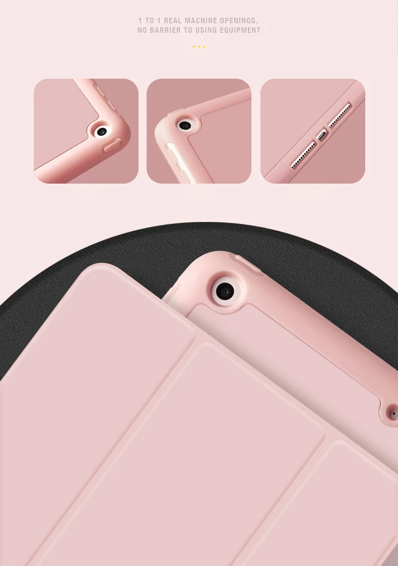 Передняя трехслойная с держателем для карандашей умная Защитная крышка изготовлена из полиуретана, внутренняя и внешняя стороны задней оболочки имеют мягкое резиновое покрытие, которое хорошо ощущается на руках и не скользит. Это цельный чехол, передняя и задняя не разделены